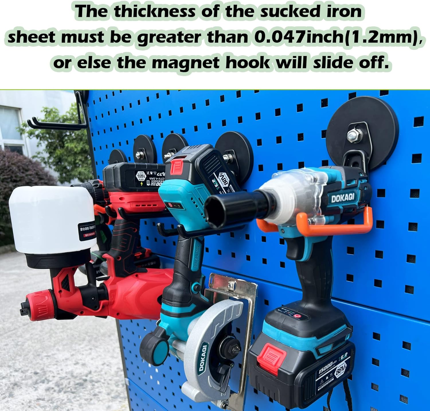 - [Multiuse Neodymium Magnet Hook]: The longer hook can easily support the bigger-sized tools and is more stable and sturdier. Not only is the tool secured without worrying about items falling off or wiggling on the hook, but multiple items can be placed
