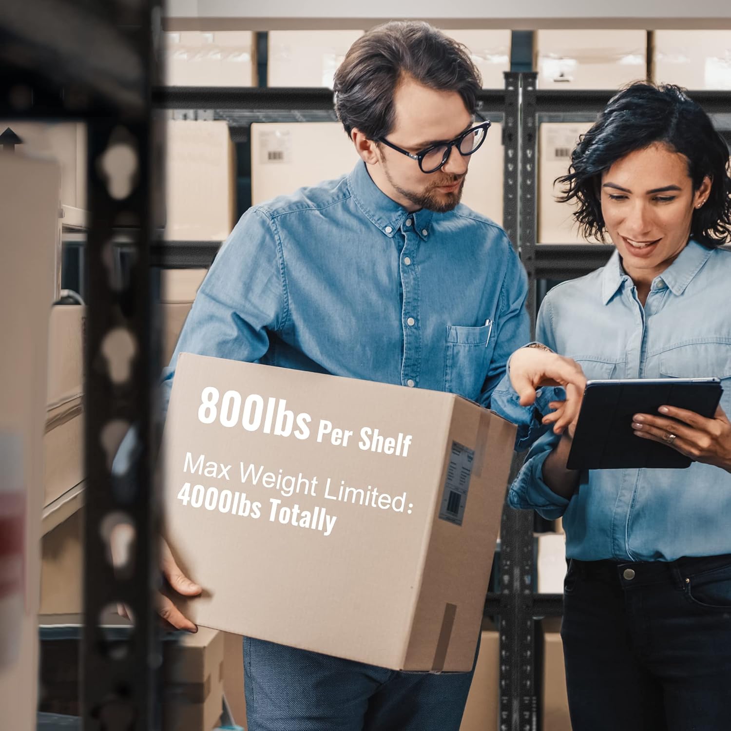 - 【4000 lbs Load Capacity】 Made of a high-quality metal frame, this shelving unit is more steady and tough than average garage shelves. The maximum capacity is up to 4000 lbs total, 800 lbs per shelf, which can store much more stuff and tools in your garage or warehouse.
