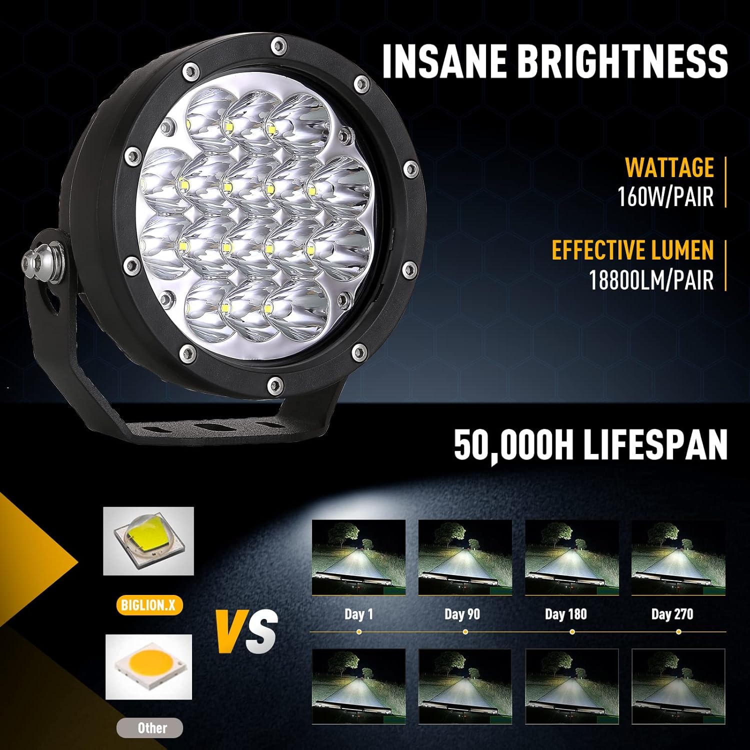 BIGLION.X Pair 160w 5 Inch Round Led Offroad Driving Lights Fog Lights 18800LM Offroad Spot Light Driving Light Pods Light Bar with Wiring Harness 12V 24V for Car Trucks SUV UTV ATV