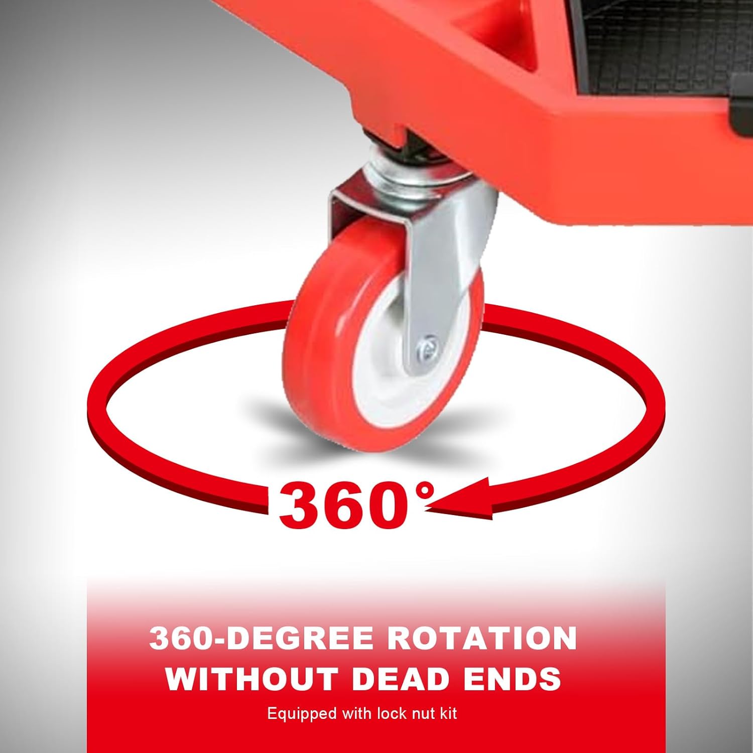 - This rolling creeper stool has a big base plate with a 16.14" diameter and a four piece removable plastic chassis to help you reach your tools more easily