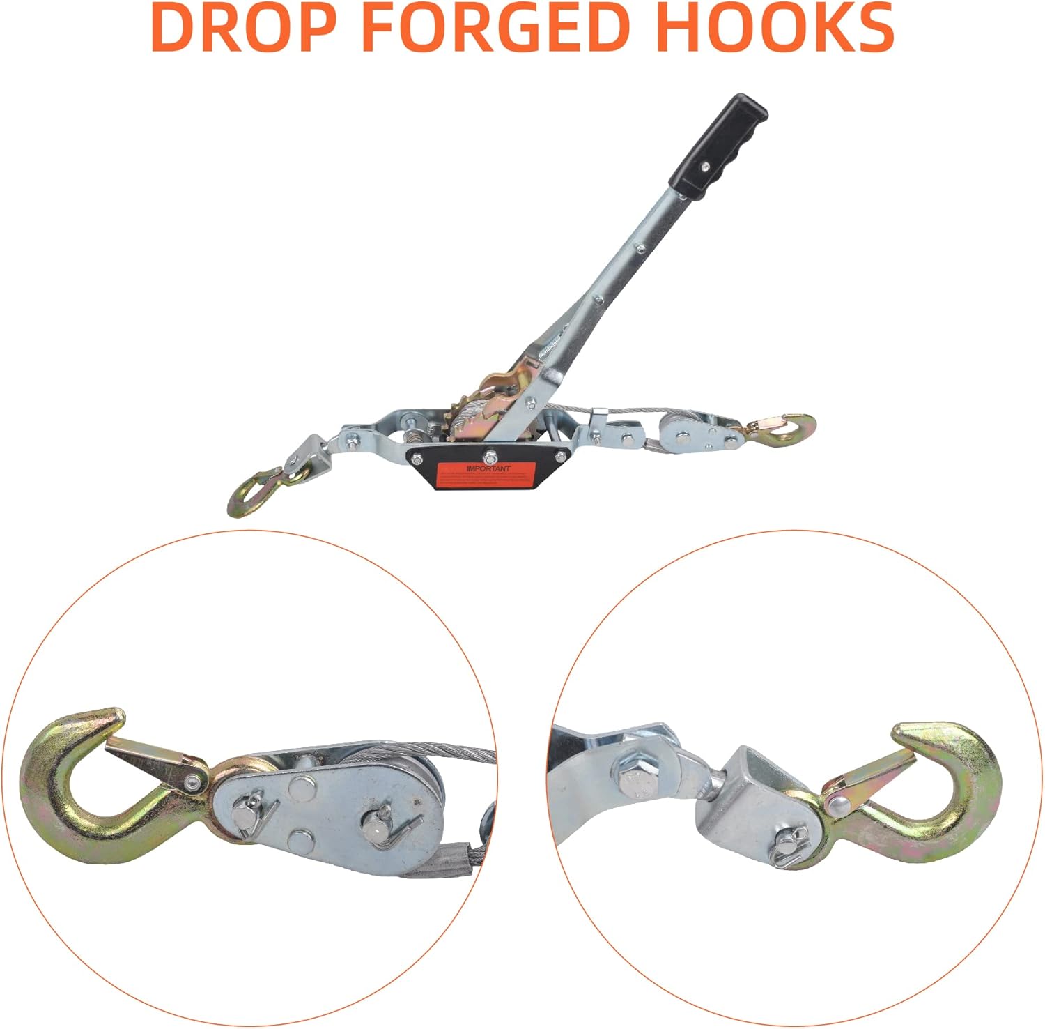 2 Ton Heavy Duty 2 Hook Steel Cable Dual Gear Power Puller Come Along Chain Winch Ratchet Tool, Automotive Hoist Hand Winch Cable Puller Stretcher Lift