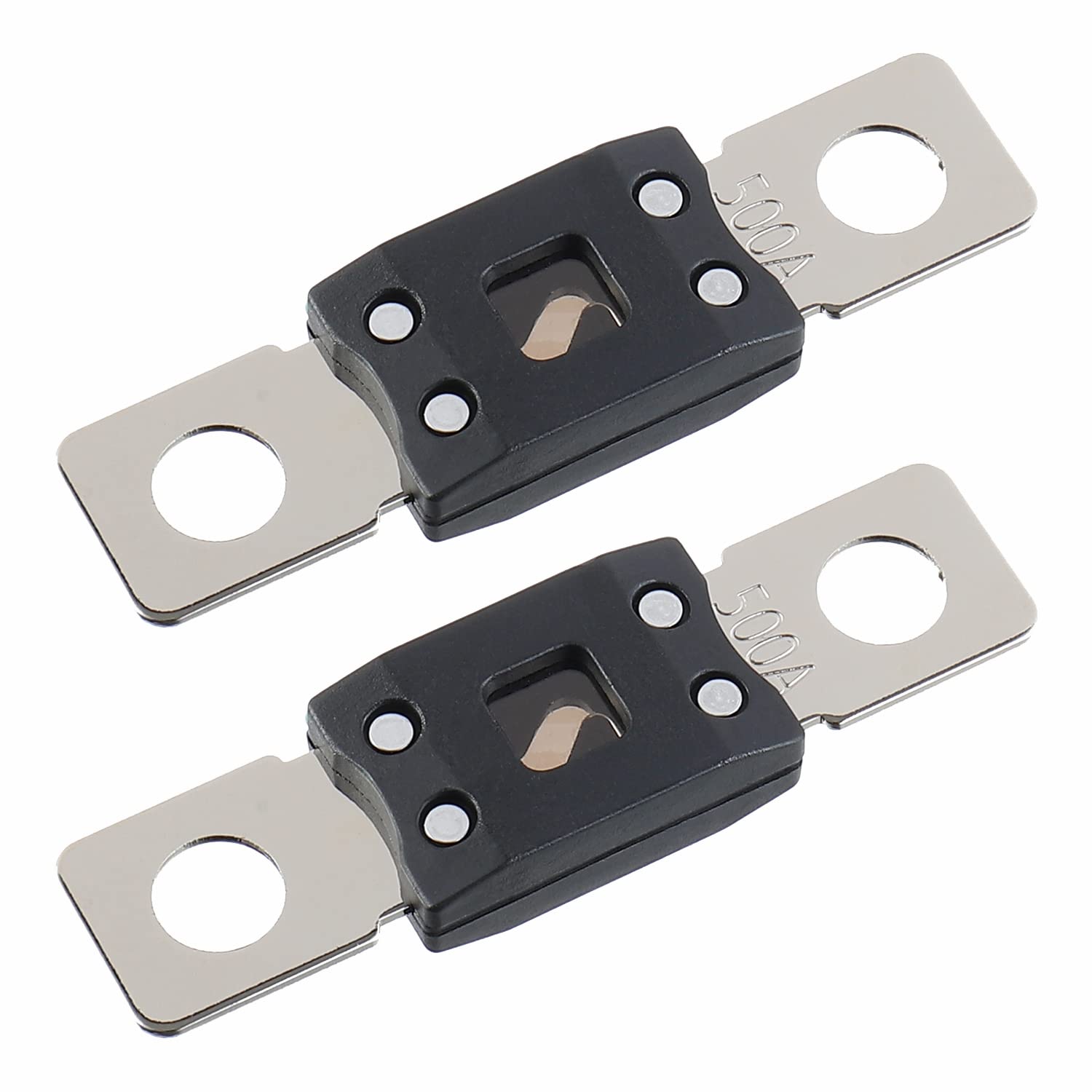 500A MEGA High Current Fuse - 500 Amp Bolt-on Fuse for Cars, Trucks, Construction Vehicles, Buses, Caravans (2 Pcs)