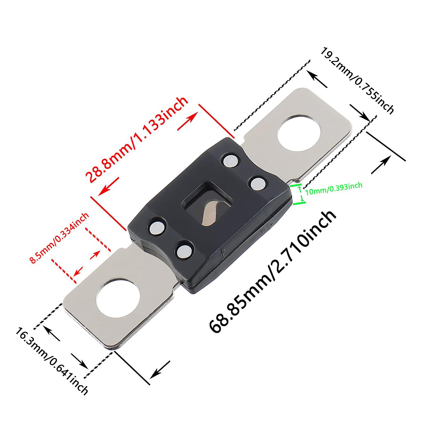 175A MEGA High Current Fuse - 175 Amp Bolt-on Fuse for Cars, Trucks, Construction Vehicles, Buses, Caravans (2 Pcs)