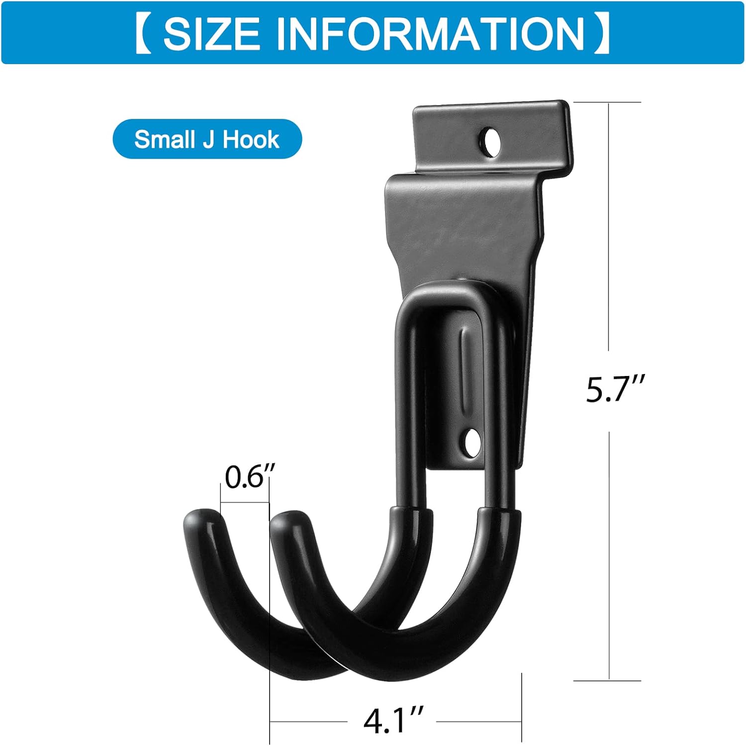 - [Universall Slatwall Accessories] Our Slatwall J Shape hooks are ideal for hanging ropes, bags, and other garage tools.