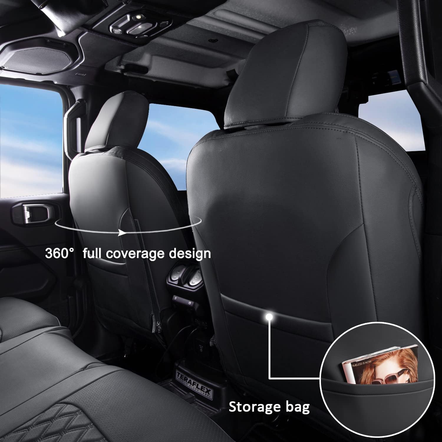 - ăCUSTOM FITă - A full set of seat covers customized according to the original car seat size 1:1, which will fit Wrangler JL 4 Door 2018 2019 2020 2021 2022 2023 2024 2025 (with Rear Cup Holder) like a glove.