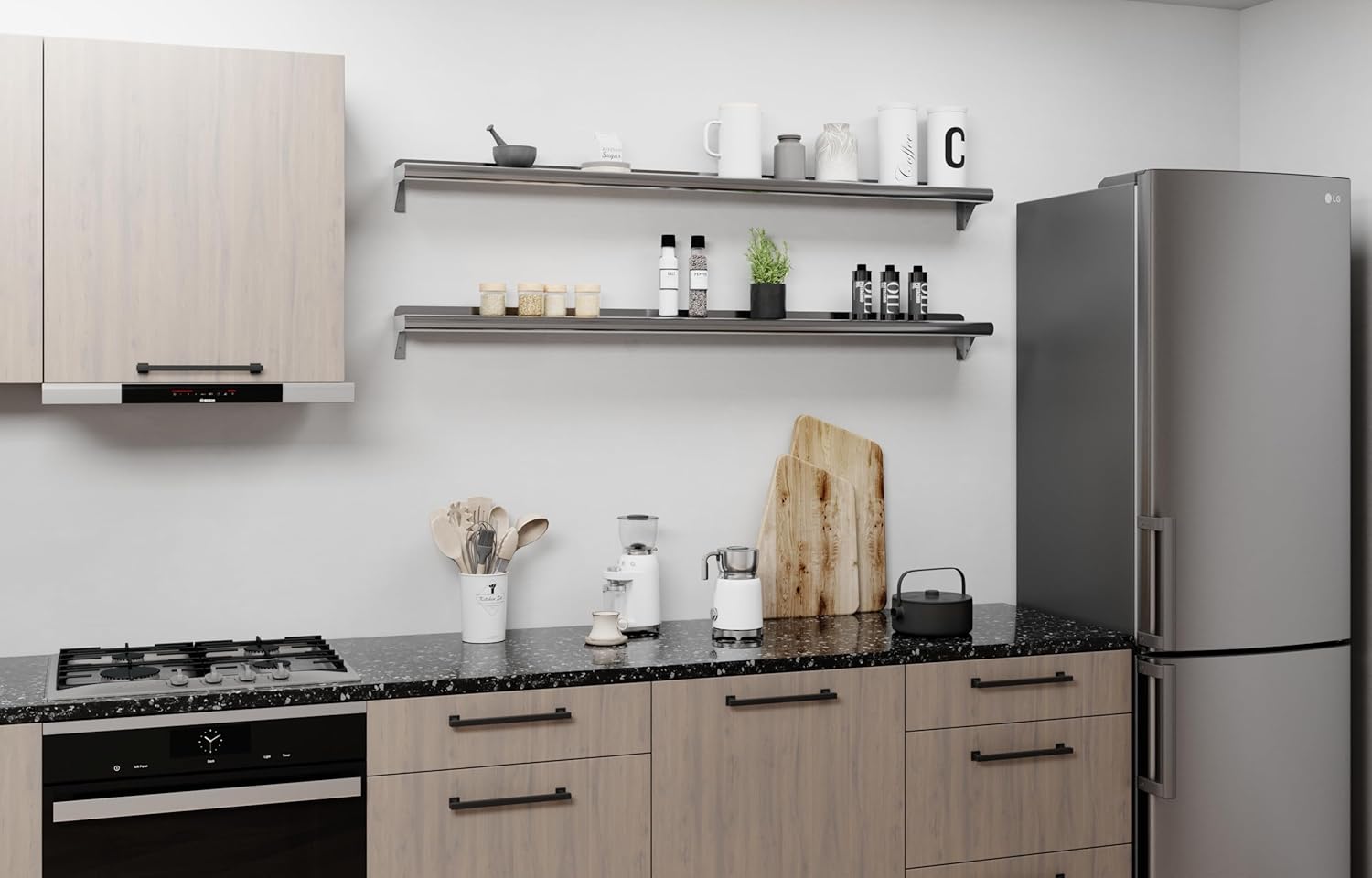 - Its professional, modern and sleek design makes this metal shelf perfect for use in any residential or commercial kitchen, food truck, garage, closet, laundry room, utility and equipment room, lab, appliance shelf for toaster and microwave, etc.