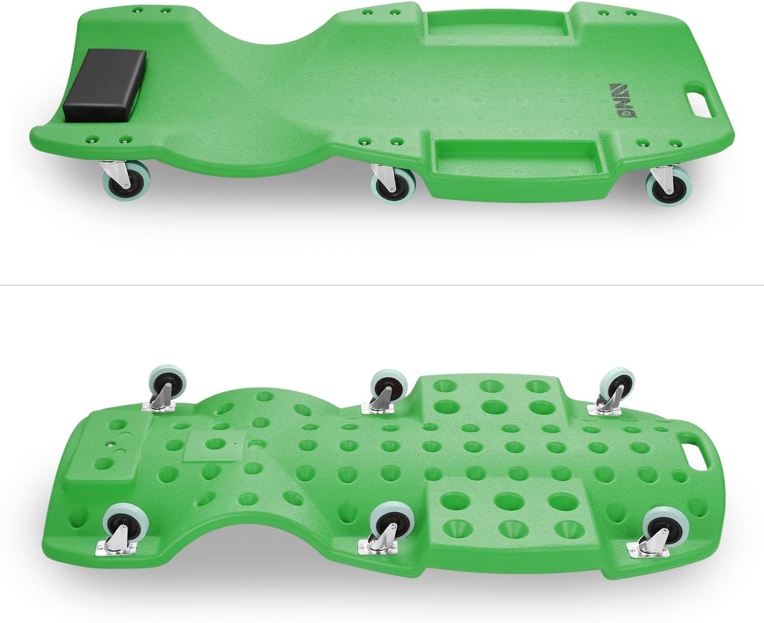 - ADVANCED DESIGN: The automotive creeper features a supportive frame with padded headrest. It has side pockets for holding tools & bolts. The advanced design is impact-resistant and offers superior comfort while laying on it.