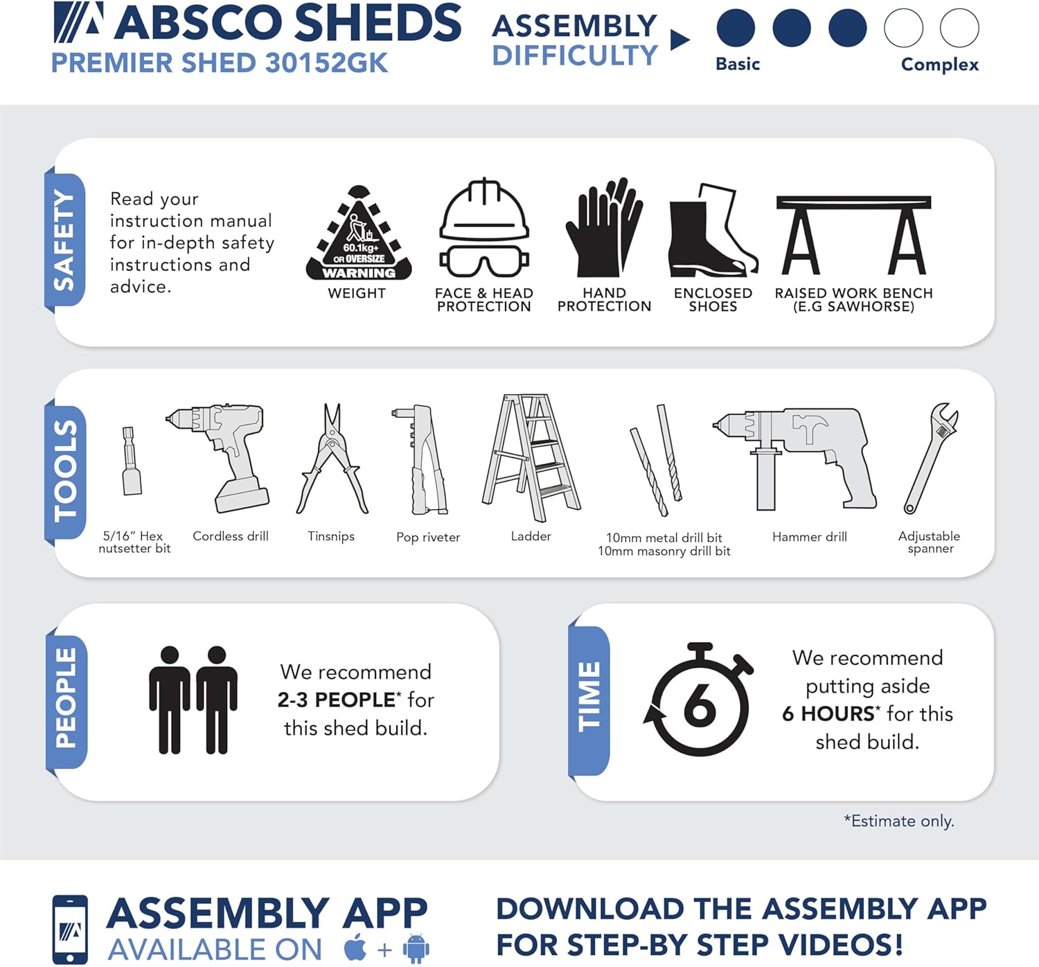 Absco Premier Storage Sheds, 10'x5' Metal Garage, DIY Backyard Shed, Utility Tool Storage, Weather & Wind Resistant Aluminum Panels & Steel Frame, Maintenance-Free, 12 Year Warranty, Monument Gray