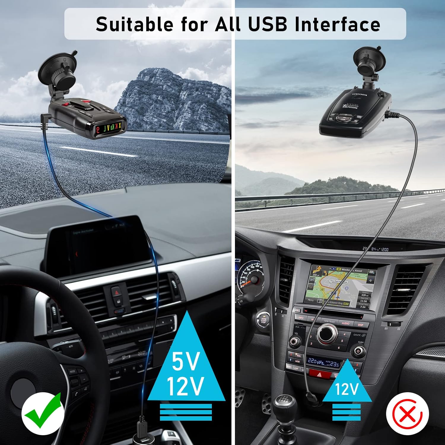- 【Stable Working Performance】The radar detector cable adopts a new chip encryption technology to ensure that the radar detector can be stably turned on when the cable is connected to 5V or 12V USB interfaces,giving you all around protection wherever your adventures take you.