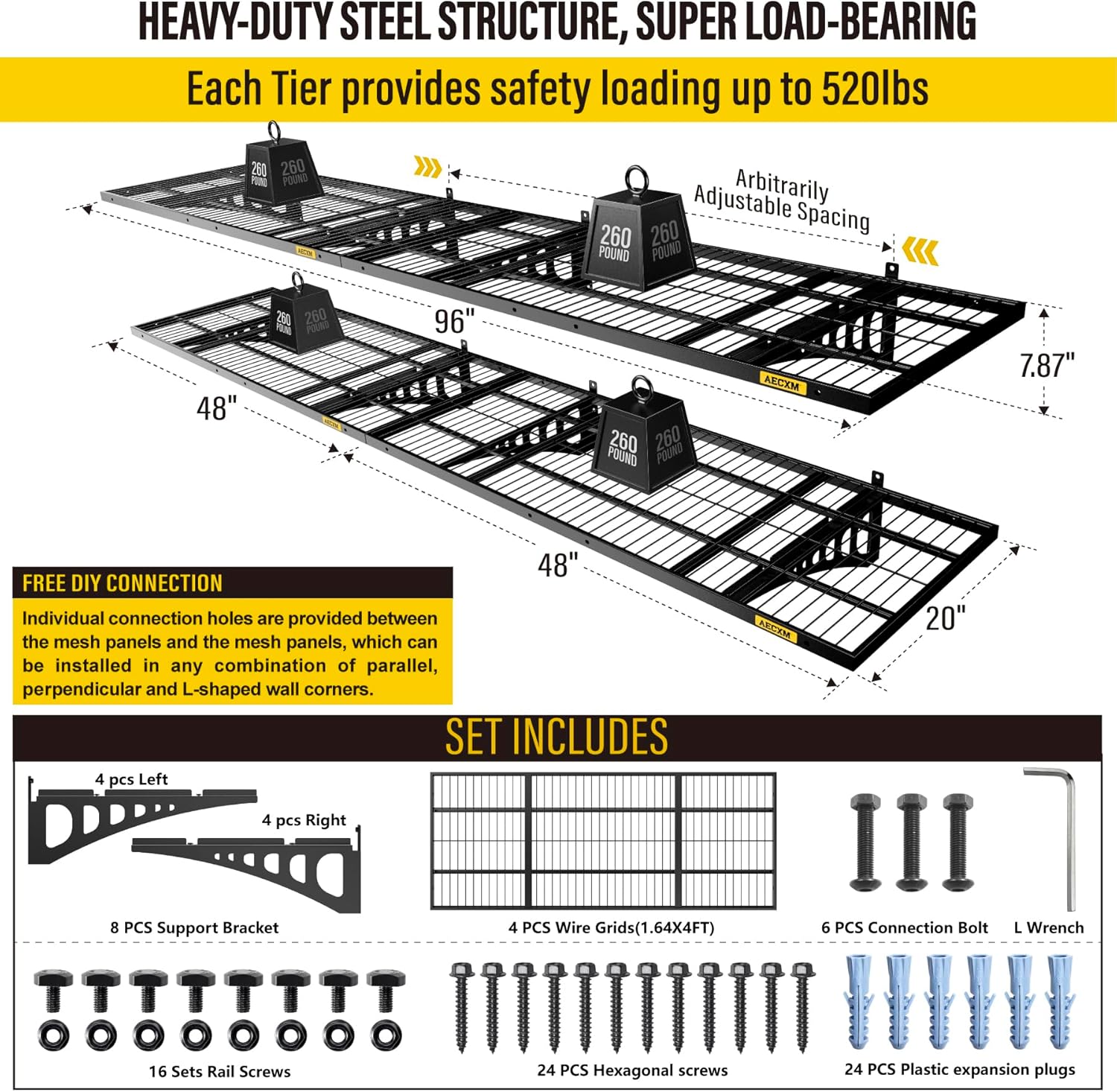 - 1120lbs Load Tested: Our garage wall shelves undergo rigorous testing, with each individual unit supporting 280 lbs. The 4-pack (1.64x4ft) offers a total weight capacity of 1120 lbs