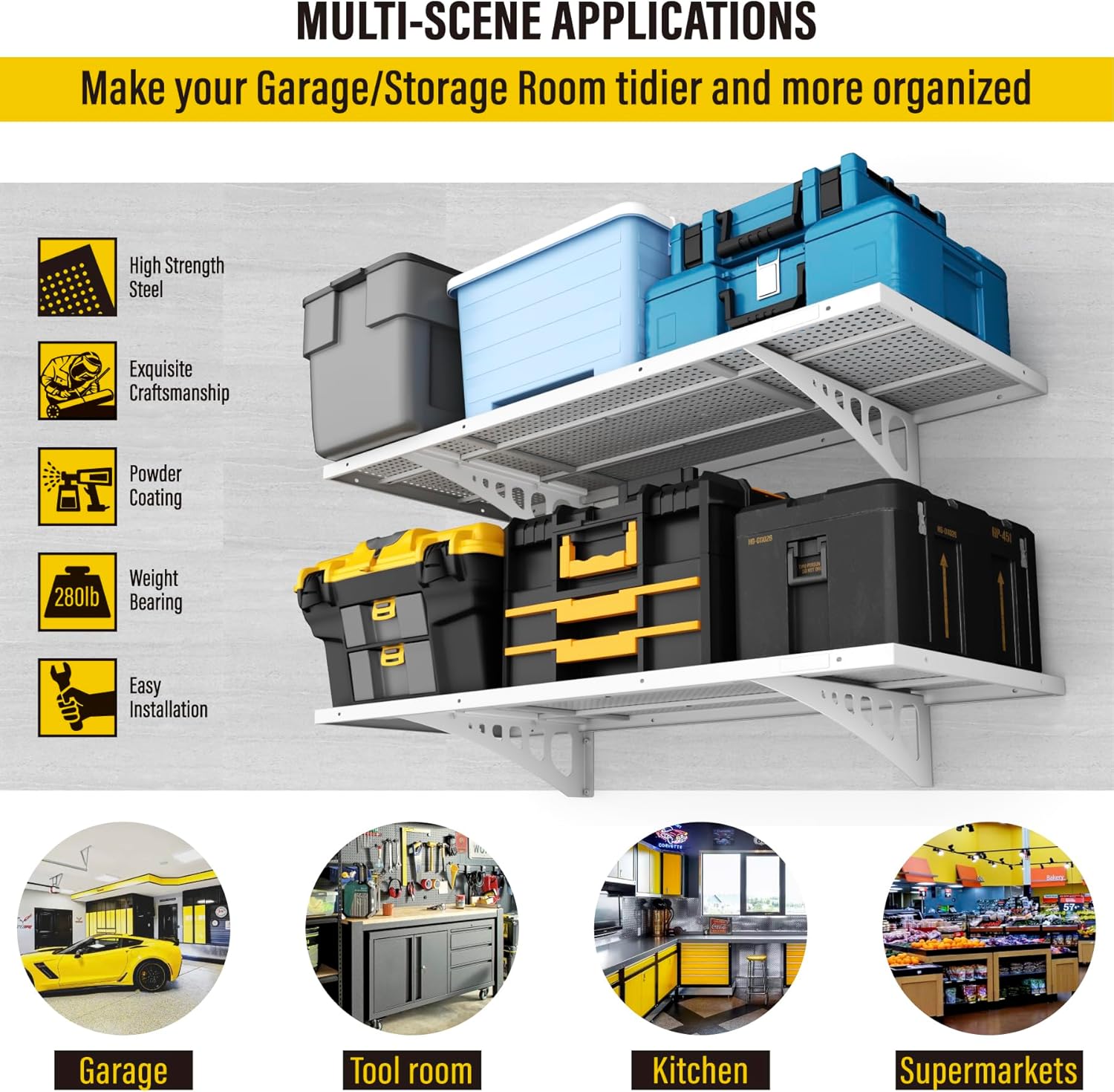 - Easy Installation: Includes high-quality screws and a detailed instruction manual, allowing one person to effortlessly complete the setup. This 1.64x4ft garage shelf wall mount offers ample storage space for your garage, kitchen, or pantry, keeping everything organized and within reach