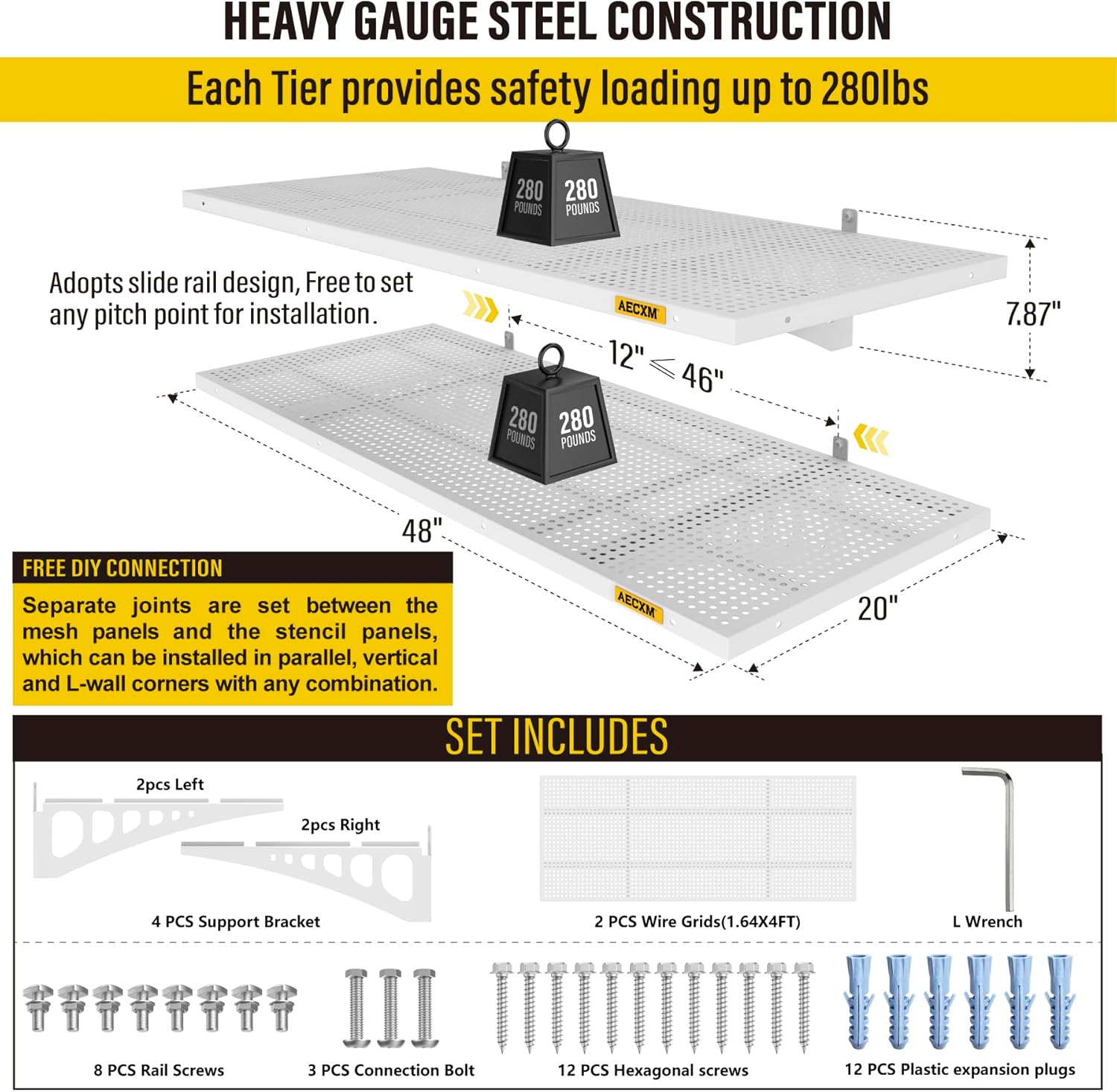 - Customer Support: AECXM offers comprehensive after-sales service. If you have any questions, feel free to contact our team—we’ll assist you promptly. (Note: For installation on brick or concrete walls, use expansion anchors to securely fasten the heavy duty shelving after drilling.)