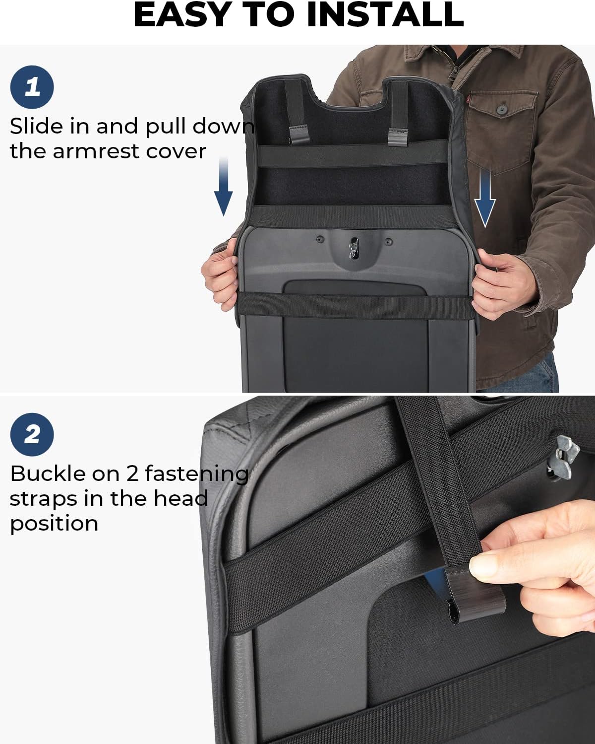 - ăEASY TO INSTALLăThe bench seat armrest cover is easy to fit on the console. 5 Elastic bands ensure a pretty tight fit, easy to put on and take off in seconds. It is durable and rugged enough that not damaged when installed.