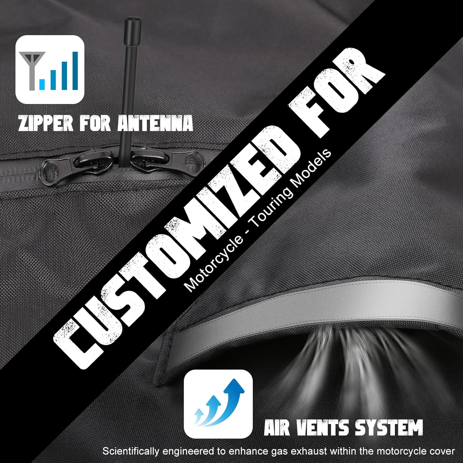 - Suitable for Most Motorcycle Touring: 107 "L x 39" W x 55 "H stereo cutting, and the widened rear cover design is suitable for most rear side boxes and motorcycle touring, such as Harley Davidson/Indian/Honda/BMW Touring Models.