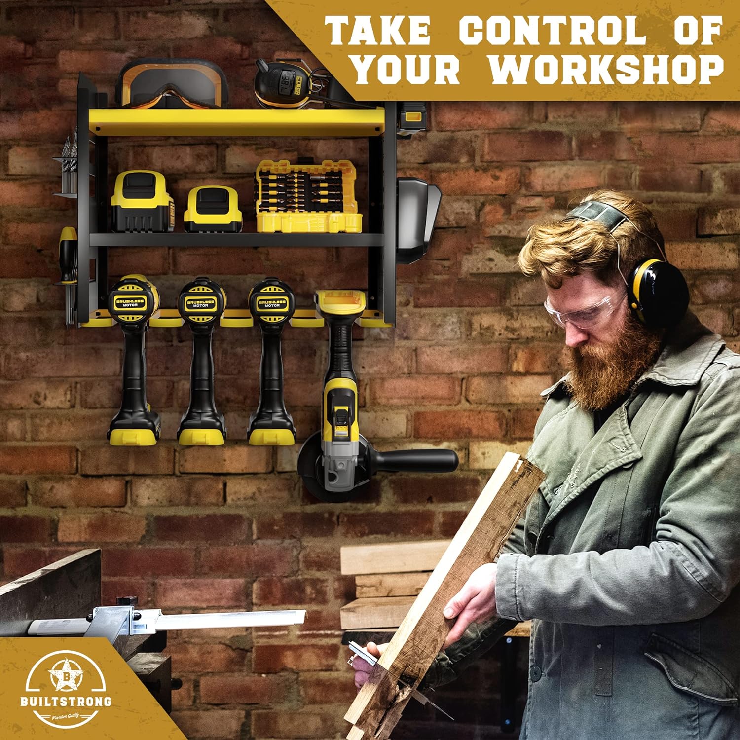 - PROFESSIONAL-GRADE DURABILITY let our tool organizers and storage shelves serve you for years on end. With a high-quality metal construction and beautiful powder-coated finish, this power tool holder stores, organizes, and looks great while doing it