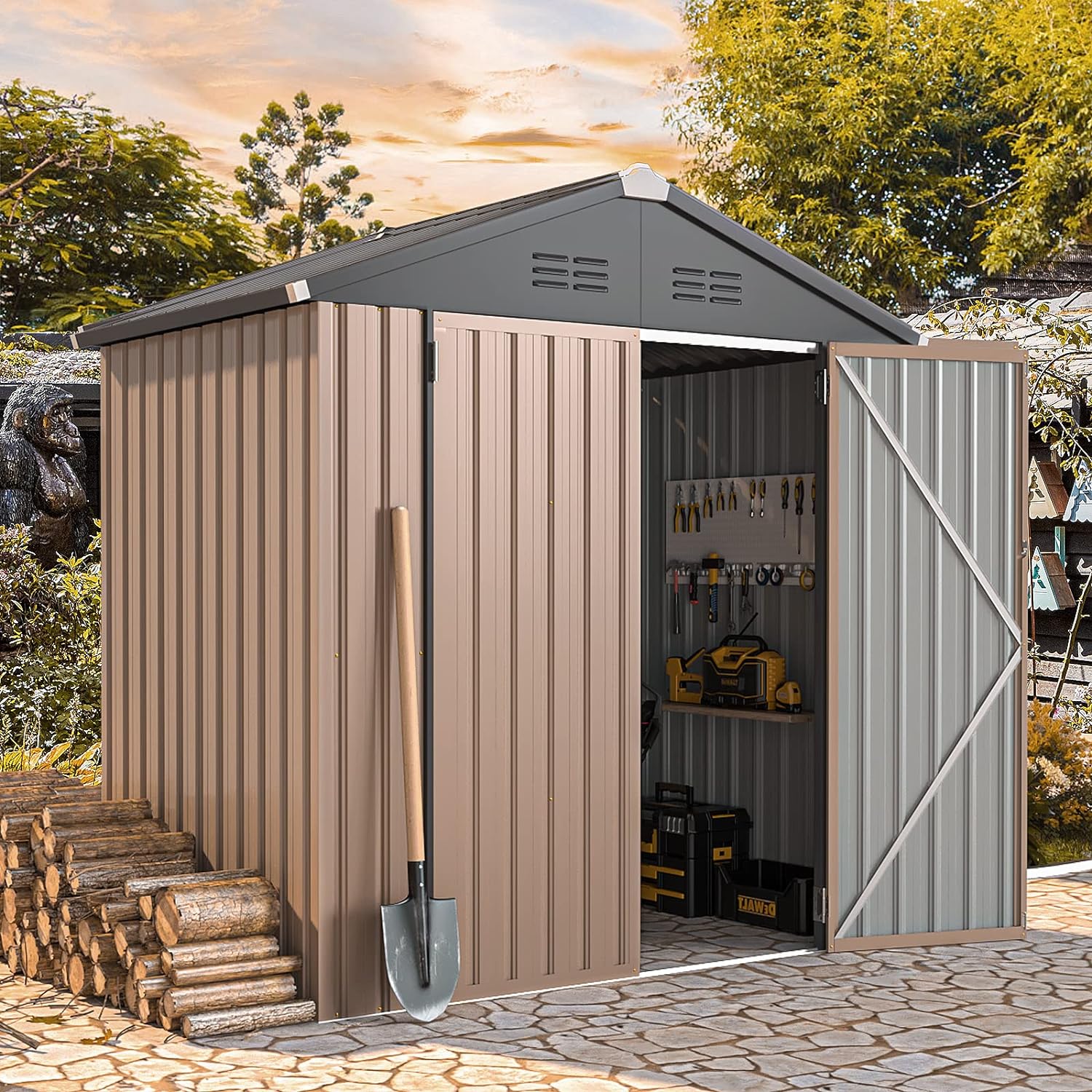 AECOJOY 6' x 4' Storage Shed, Metal Sheds & Outdoor Storage Clearance, Utility and Tool Garden Shed with Lockable Doors for Backyard, Patio, Outside Use