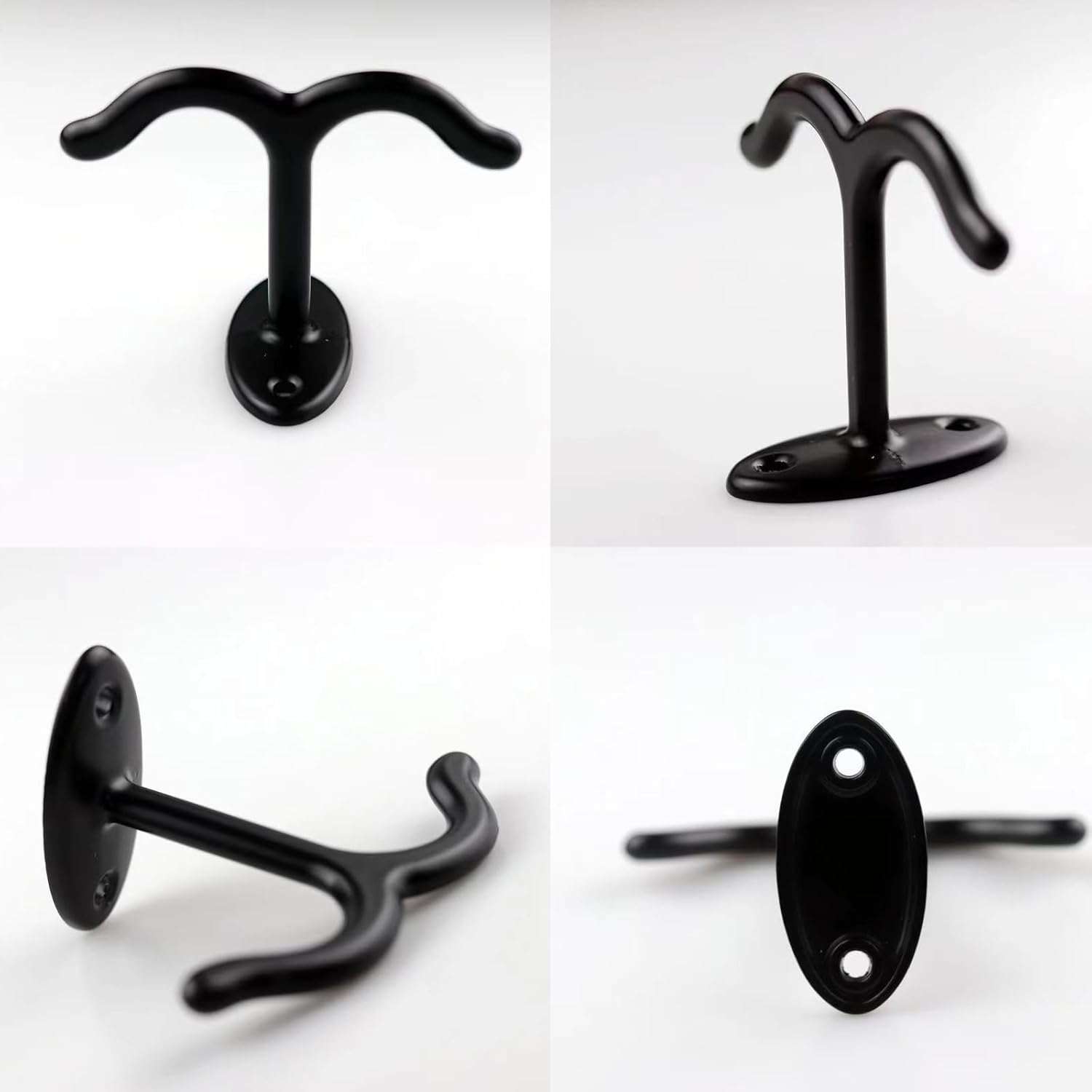 10 Pcs Zinc Alloy Ceiling Double Hook Cabinet Wardrobe Coat Towel Hat Hook Hooks Under Cabinet Shelf (Black)