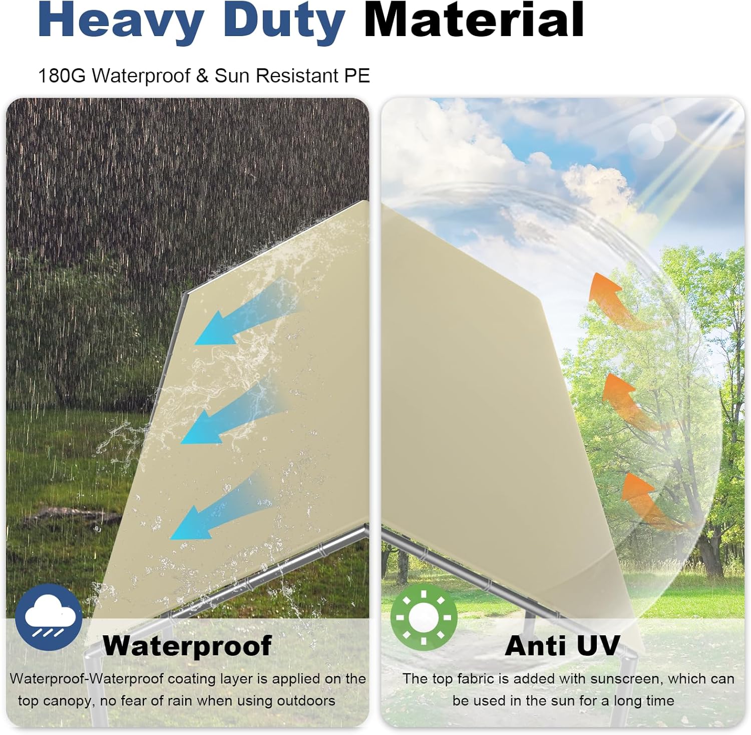 - High quality material: 200g waterproof tarp with high density coating technology can protect your vehicle from sunlight to wind and rain all year round
