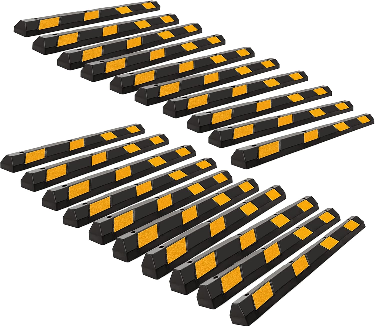ZONETECH Large Heavy Duty Rubber Parking Curb – 72” Premium Quality Auto Garage Wheel Stopper Professional Grade w/Yellow Reflective Tape for Car, Truck, Trailer and RV (20-Pack)