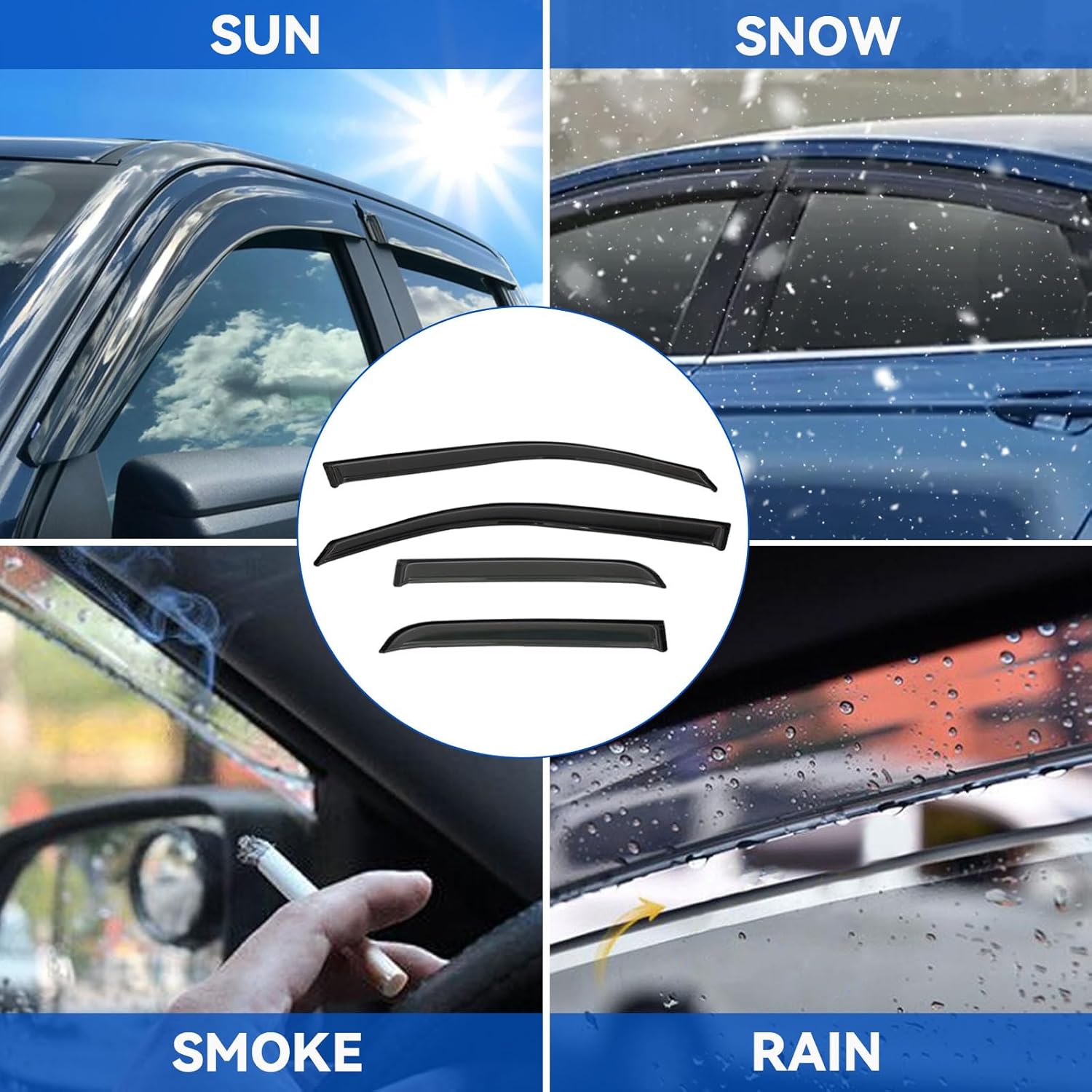- Package Included: 4pcs front + rear vent window visors (3M Tape Included)