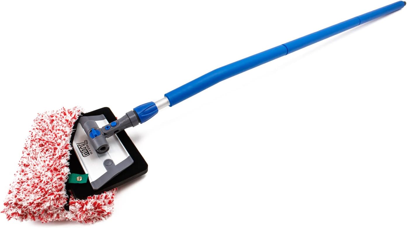 Autofiber [Mitt on a Stick PRO] Adjustable Head Car Wash Brush | 61" Sectional Angled Pole (Red Dragon Cover)