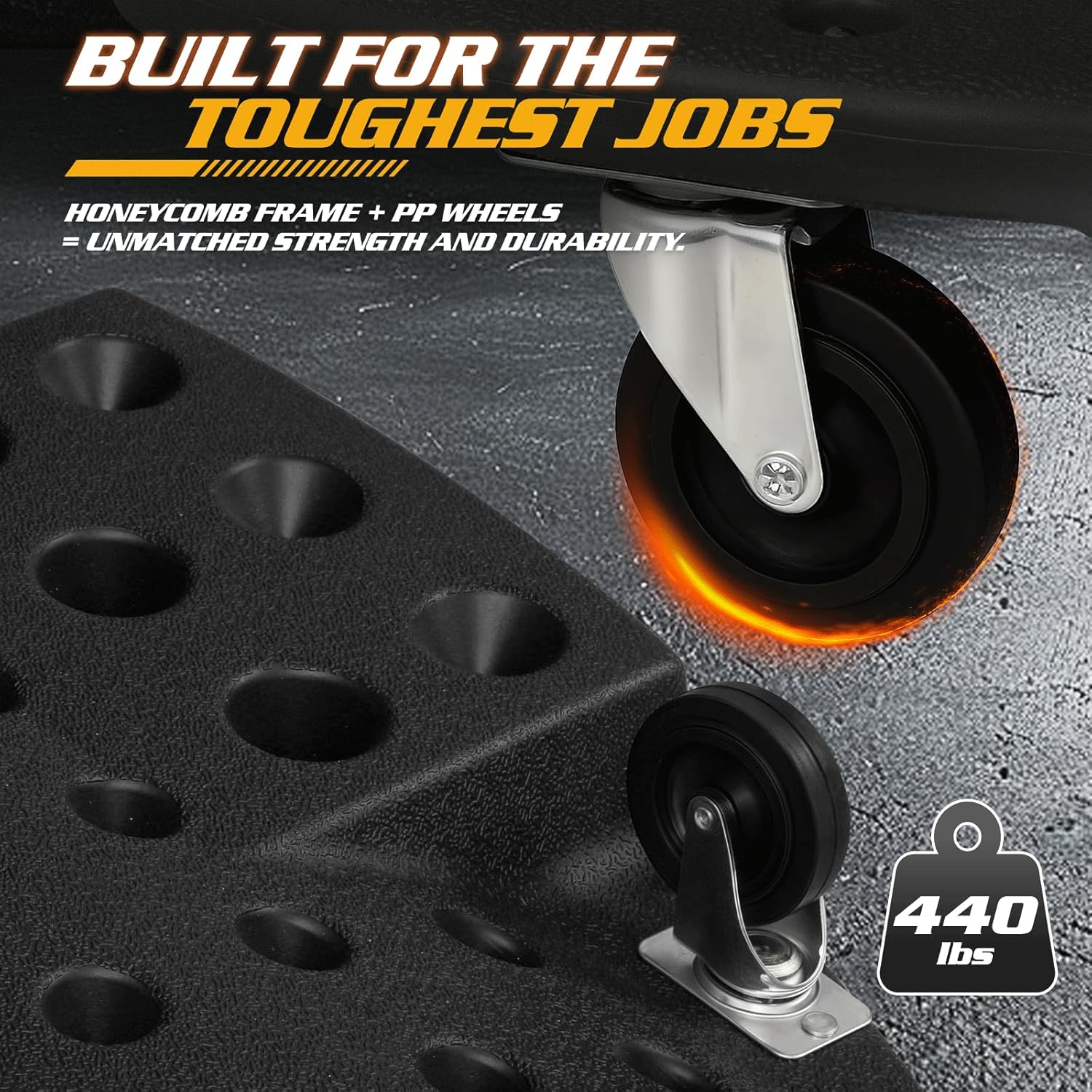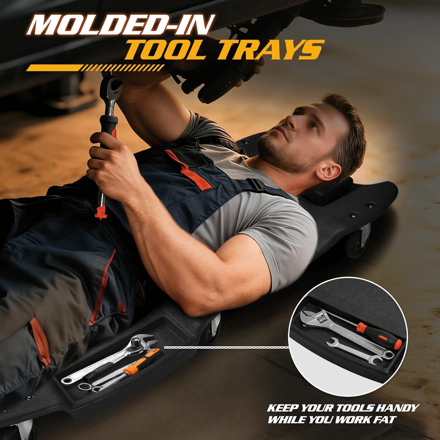 Magshion Mechanic Creeper with Padded Headrest and Dual Tool Tray, Rolling Garage Floor Creeper with 6 Wheels, Lightweight and Portable Automotive Creeper - 440 lbs Capacity (Black)