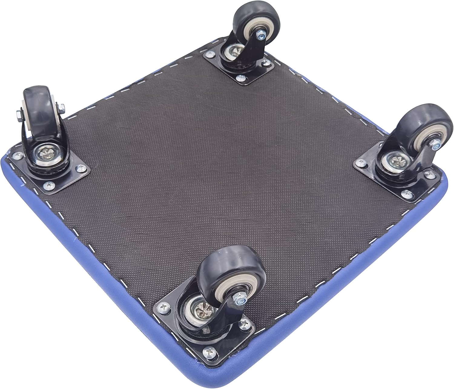 Roller Seat 360 Degree Rotating Low Stool with Wheel Chair PU Leather Universal Swivel Wheels Stool for Home Office Fitness and Garage (Square Blue)