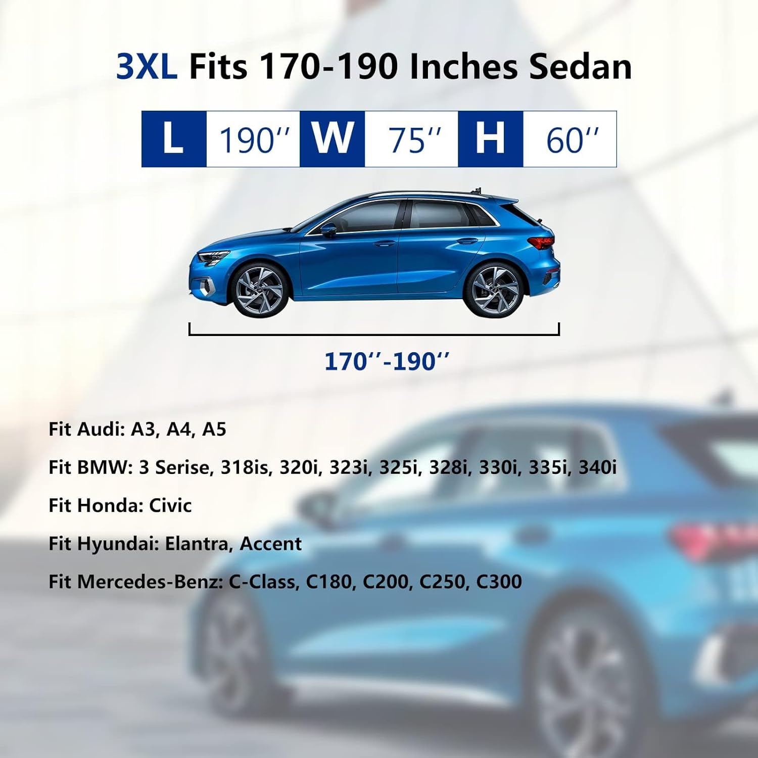 - COMPATIBLE SIZE: Tecoom 3XL car cover fits 170"-190" length sedans. Please check car details before ordering - hatchback coupe or SUV; date of manufacture; vehicle overall length