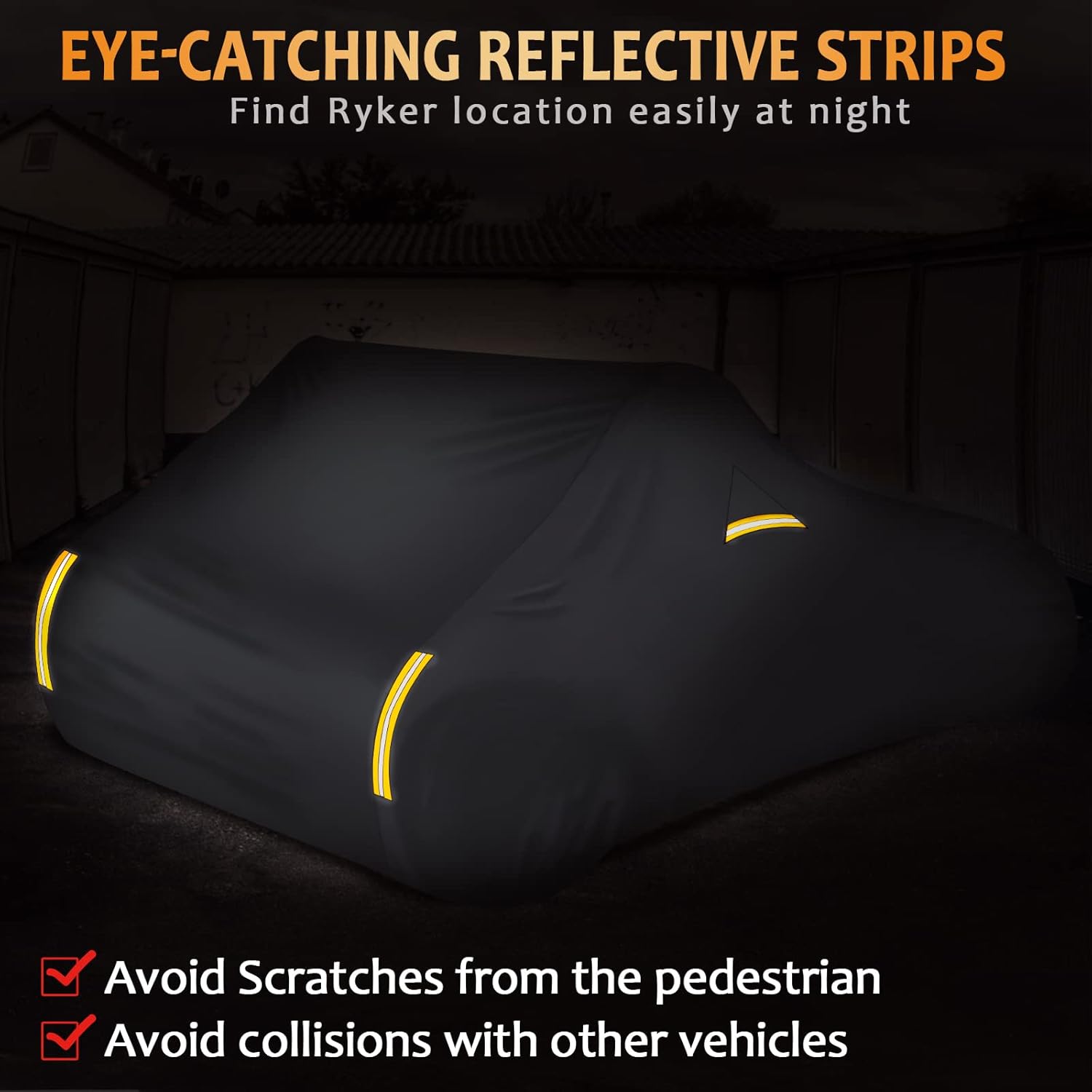 - All Weathers Application: Coated with sunproof PU, The Ryker Cover protects Ryker from fading and aging. Applied to any weather, the Ryker full cover will keep your 3-wheel clean, safe, and free from dirt, rain, dust, leaves, snow, etc