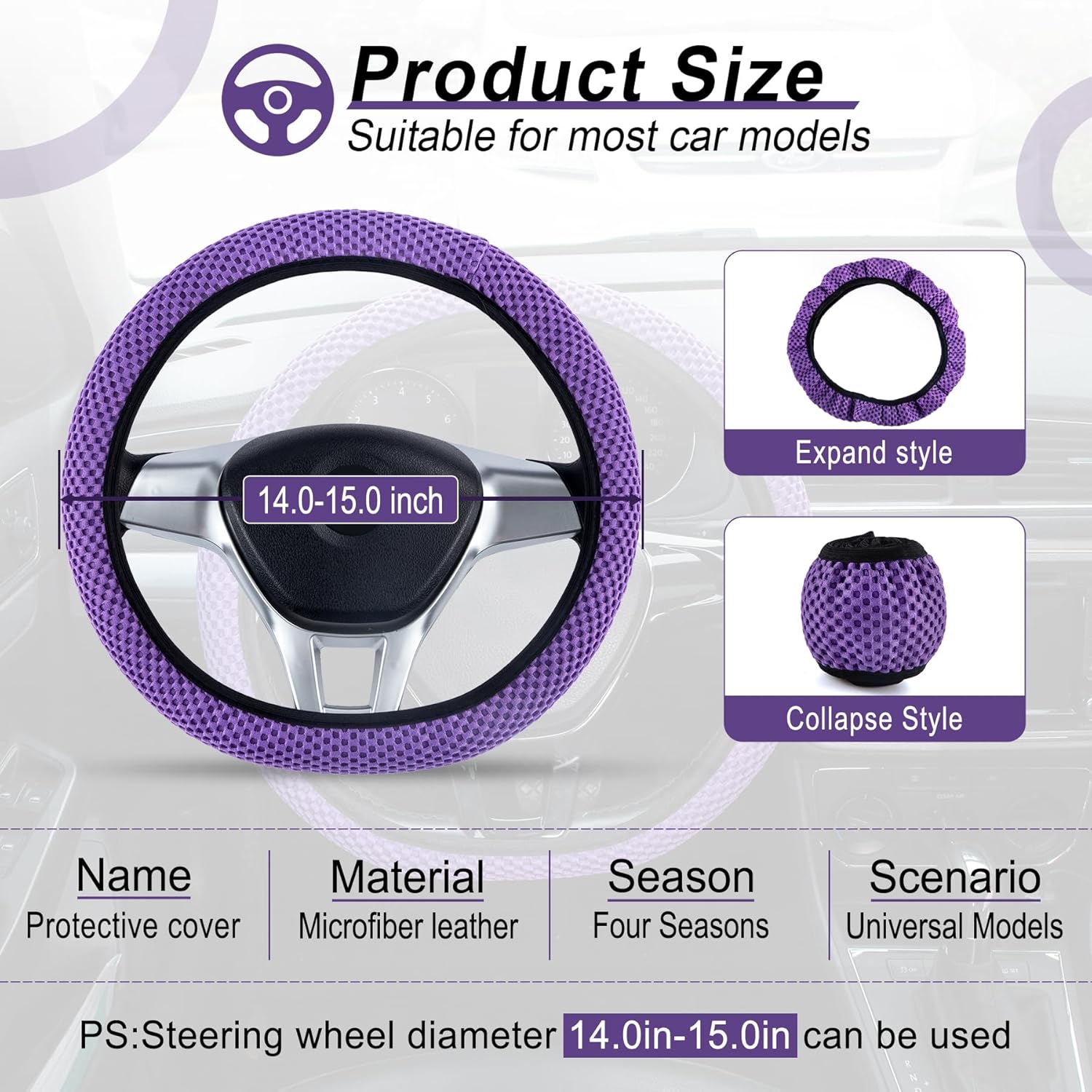 - 【Suitable for all Middle】: Size steering wheels with diameter 14 1/2 inch to 15 inch.