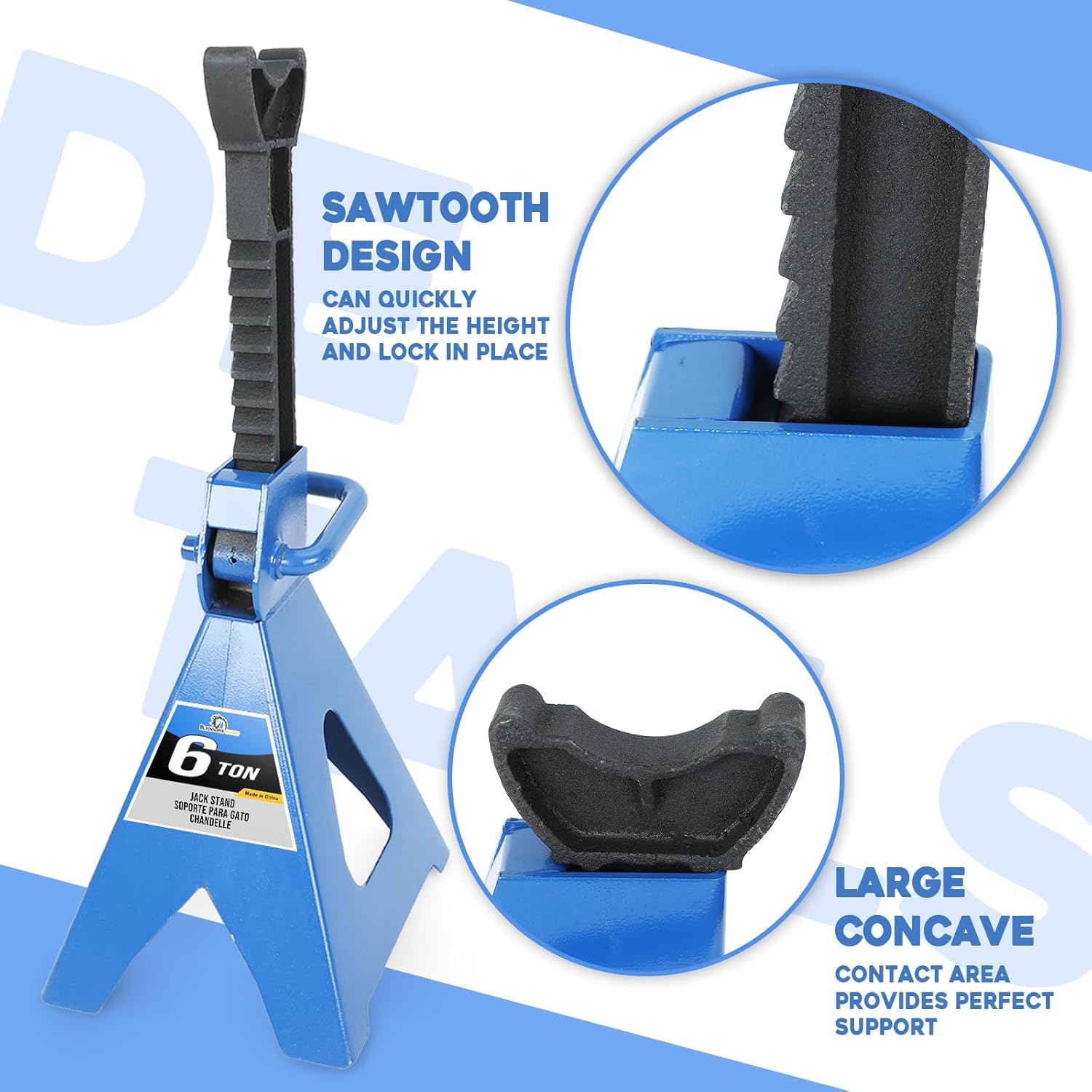 - SELF-LOCKING DESIGN:Our car jack stand is forged iron self-locking ratchet rod, which is easy to use. When the handle is upward, the ratchet can be freely adjusted to any height. When the handle is lowered, the ratchet will automatically lock