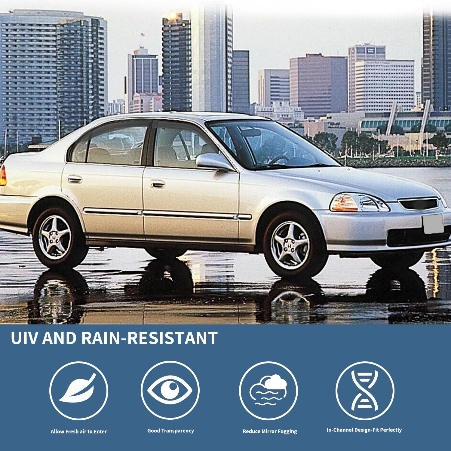 - FITMENT: 4pcs sun rain snow guard wind deflector vent shade side window visors compatible with 96 97 98 99 00 (96-00) Honda Civic 4d/4dr sedan model