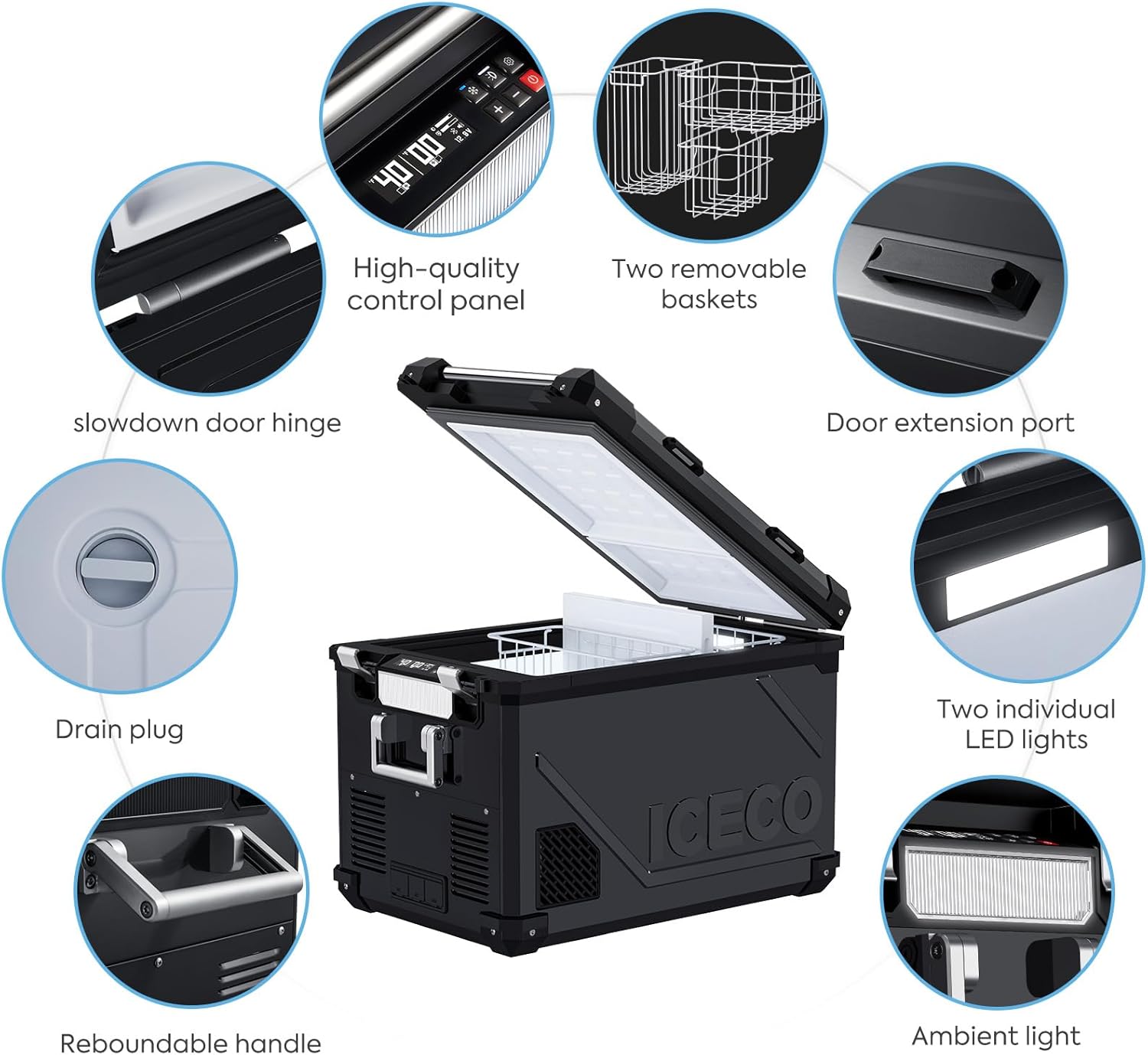 ICECO APL55 Dual Zone Portable Refrigerator Freezer Bluetooth Controlled, 55 Liter 12v refrigerator with SECOP Compressor, DC 12/24V, AC 110-240V, for Truck, Car and Home, -4℉~68℉ (Black)