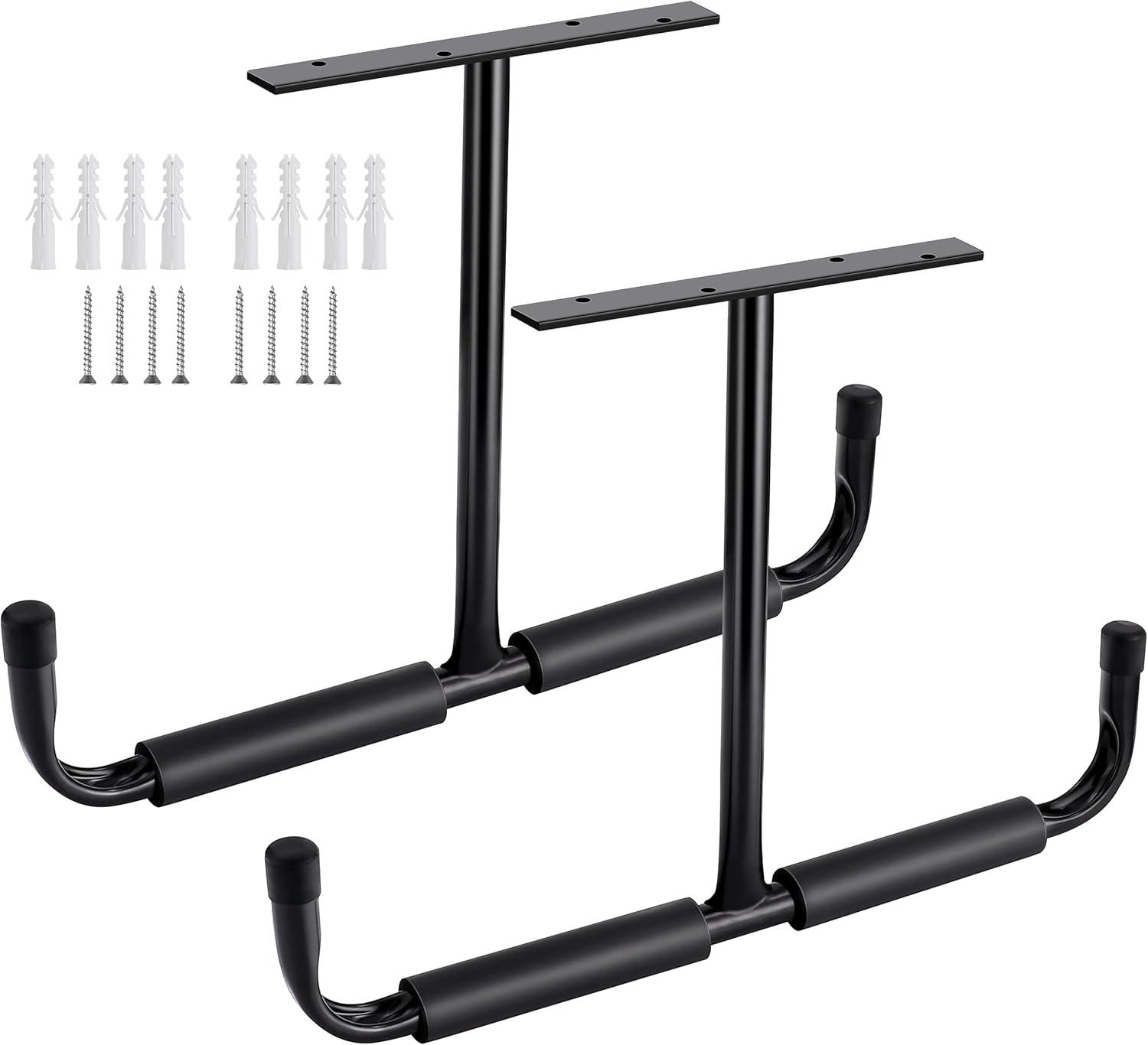 - Easy Installation: The garage ceiling storage hook set includes 2 pieces double armed Hooks, 8 screws and 8 anchors, for quick and hassle-free installation. Simply mount it to your ceiling and start maximizing your storage space.