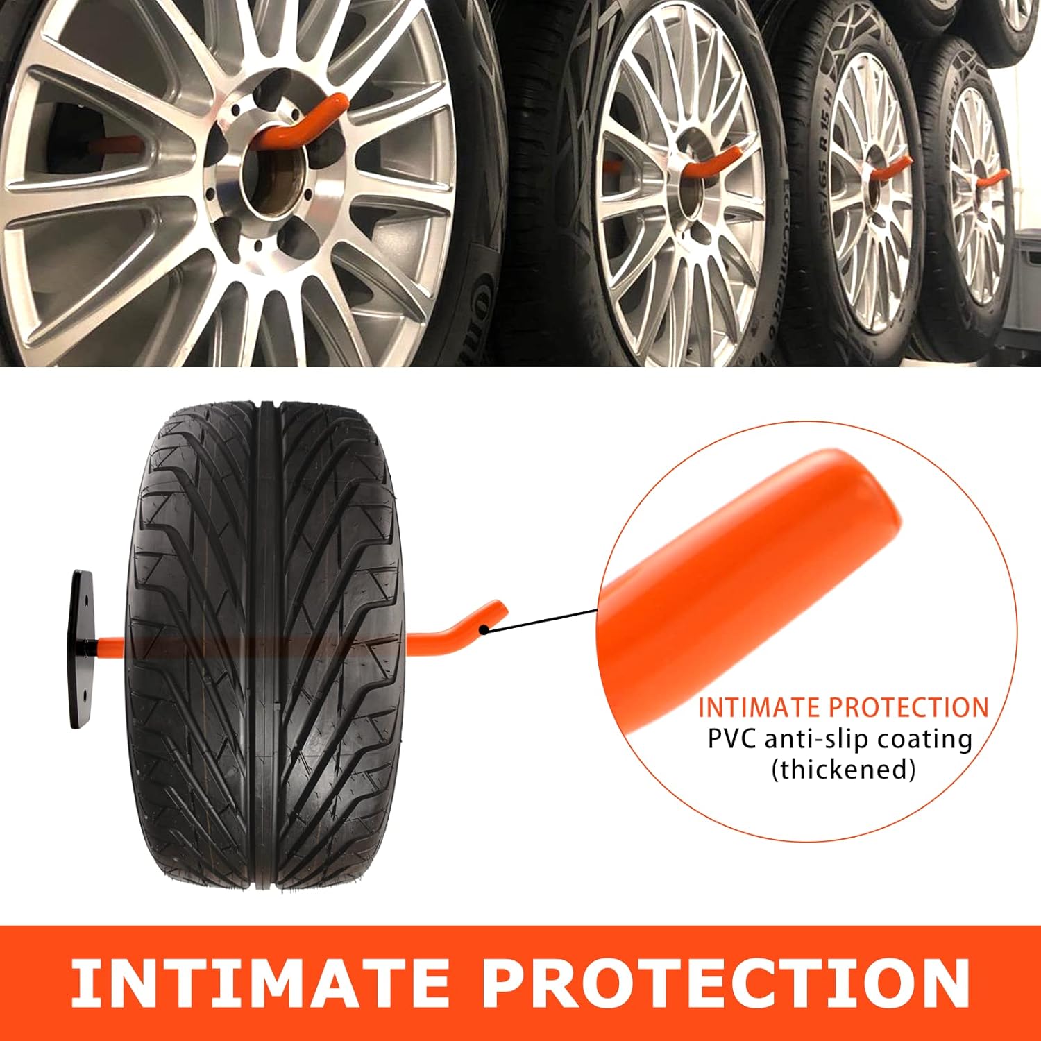8 PCS Garage Hooks Heavy Duty Wall Mount, Tire Storage System with Anti-Slip Coating, Hang Heavy Tools for up to 88Lbs, for Bikes, Ladders, Chairs and Bulky Tools