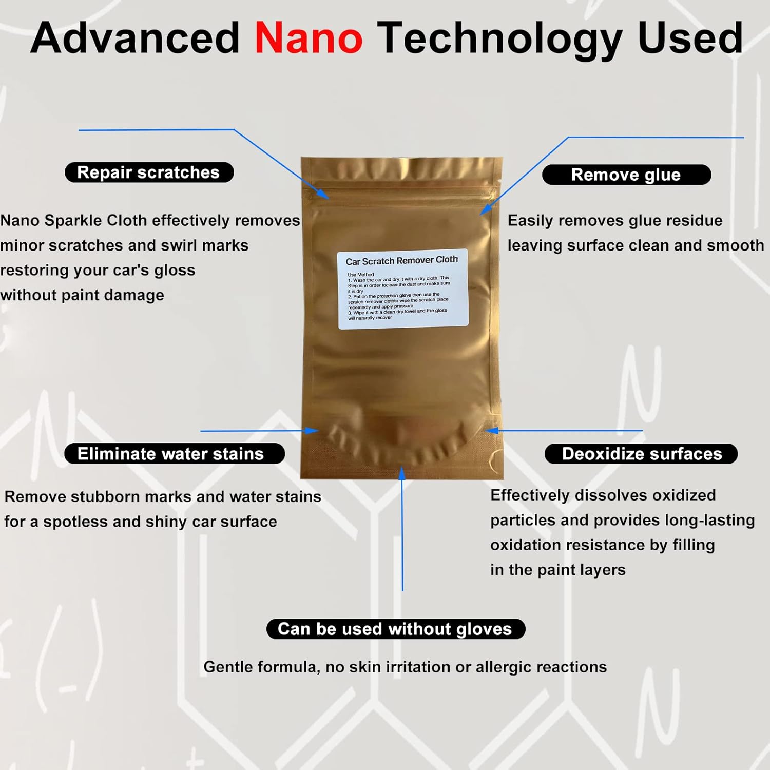 - SAVE TIME & MONEY: Simply clean and dry the affected area, then wipe it with the car scratch remover cloth to remove scratches and dirt. Nano sparkle anti-scratch cloth can be used for 10-15 times and should be stored in the sealed bag after use. No need to visit auto repair or paint shops