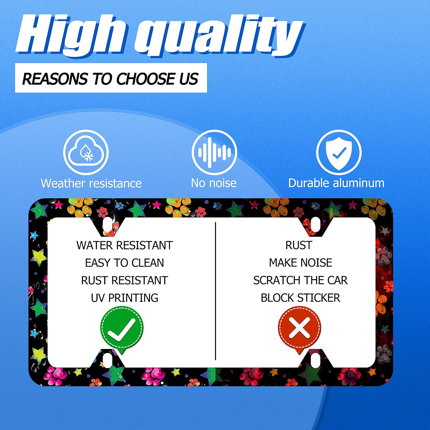 - Design:Use Advanced digital printing Protects license plate frames from Whether it's a car wash, heavy rain or hot weather, it still looks brand new,Let your car still be unique and stylish while driving on the road