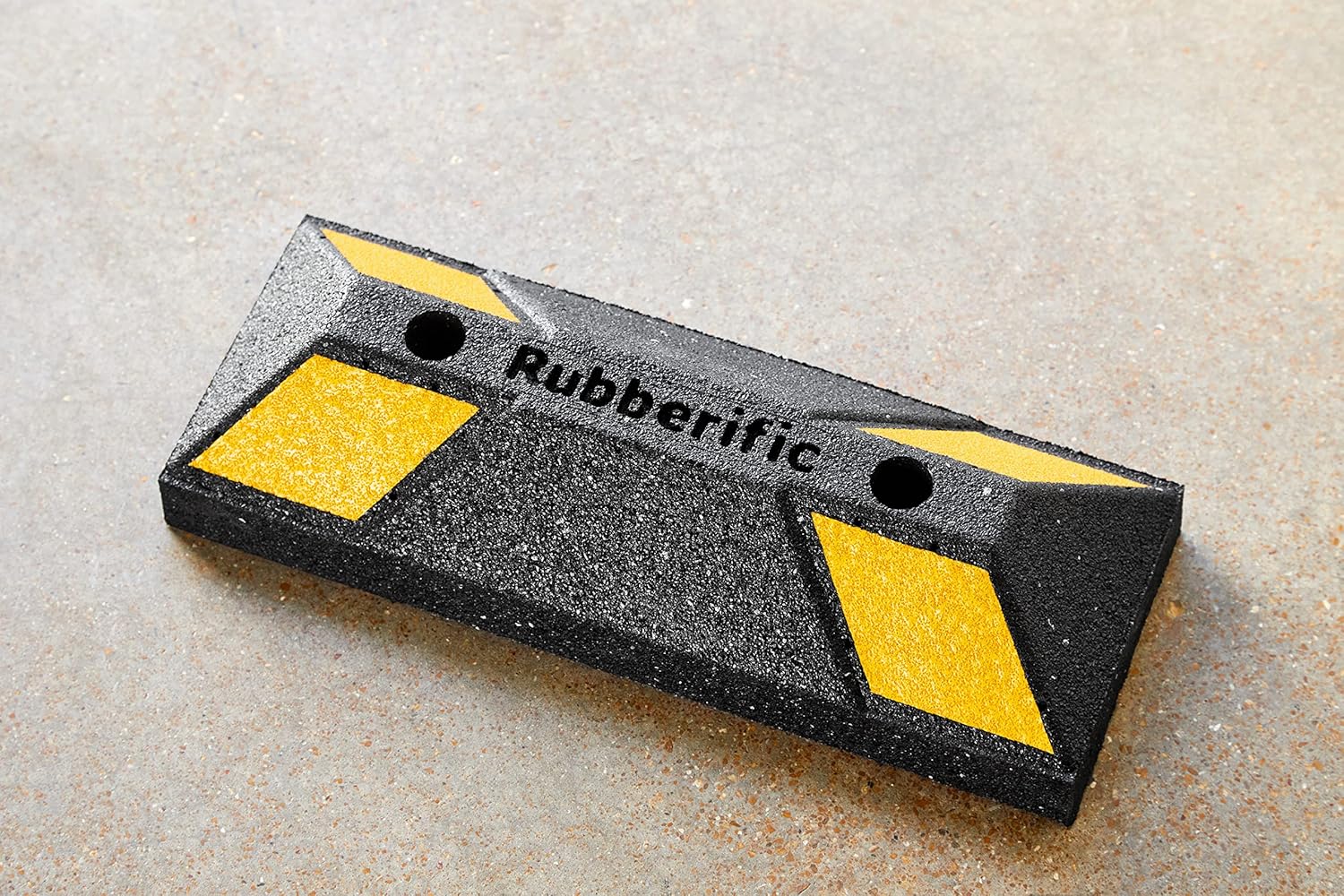 Rubberific Heavy Duty Rubber Parking Stop Durable Easy to Install Reflective Parking Curb Garage Car Stopper for Indoor and Outdoor Use (1 Pack)