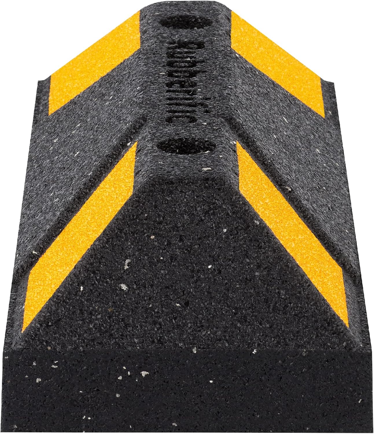 Rubberific Heavy Duty Rubber Parking Stop Durable Easy to Install Reflective Parking Curb Garage Car Stopper for Indoor and Outdoor Use (2 Pack)