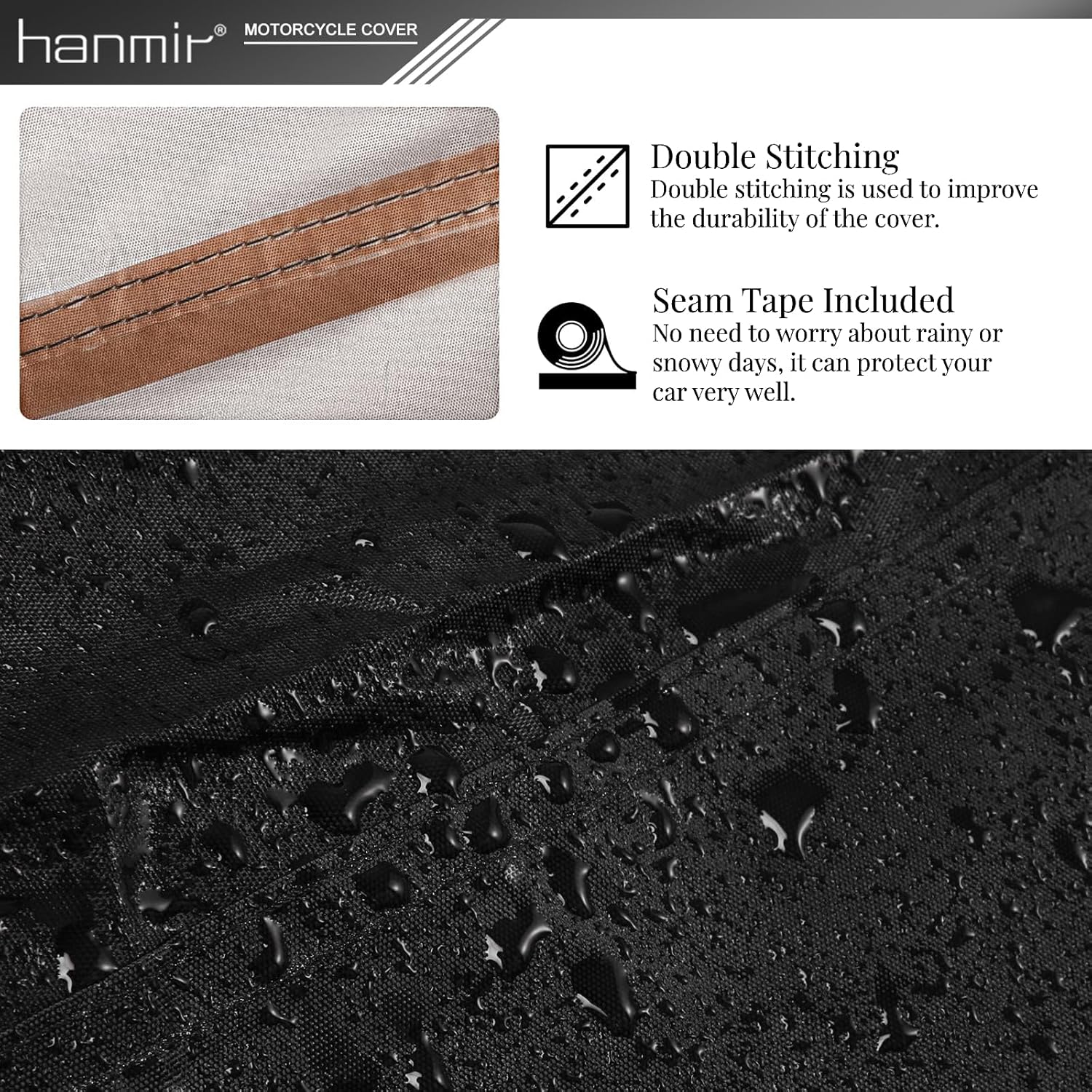- Careful & Practical: The product has four 6.9-inch reflective warning strips on the front and back, making it safer at night, in foggy weather, in rain, etc. This package also comes with a storage bag. You can use the storage bag to organize the motorcycle cover, it will not take up space and keep the motorcycle cover clean.