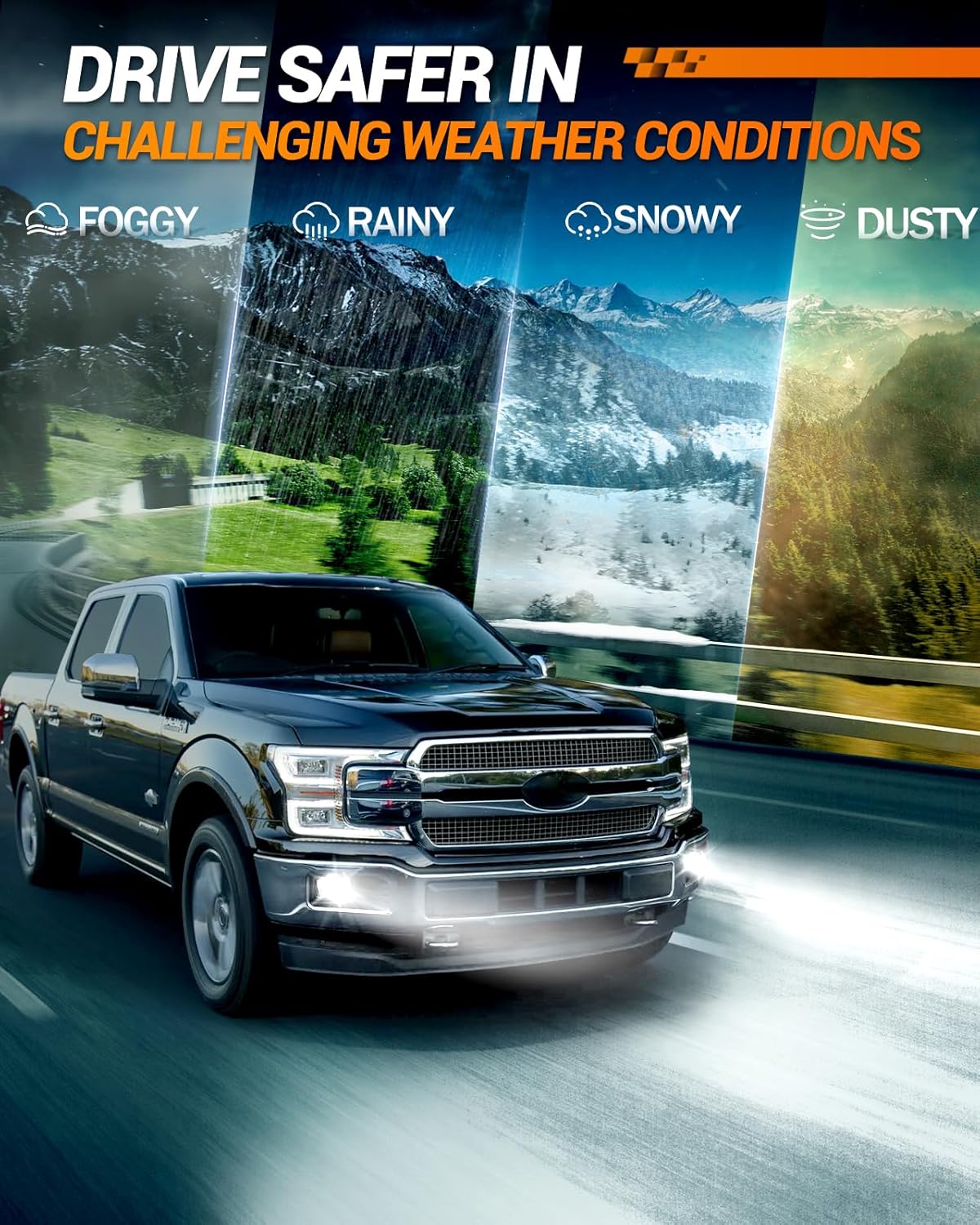- 18000 High Lumens: The key feature is the powerful Dual-row 7035 CSP chips, Upgrading from 12 LED chips to 24 LED chips, equipped with cutting-edge chip technology. XF3 series 5202 LED fog light bulbs are renowned for their 800% Brightness and 30w high power. These fog lights LED emit a powerful beam that effortlessly cuts through dense fog, heavy rain