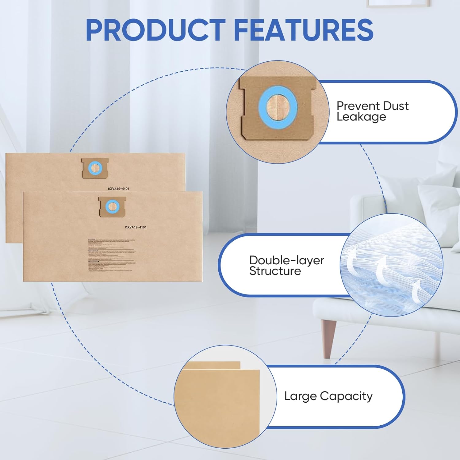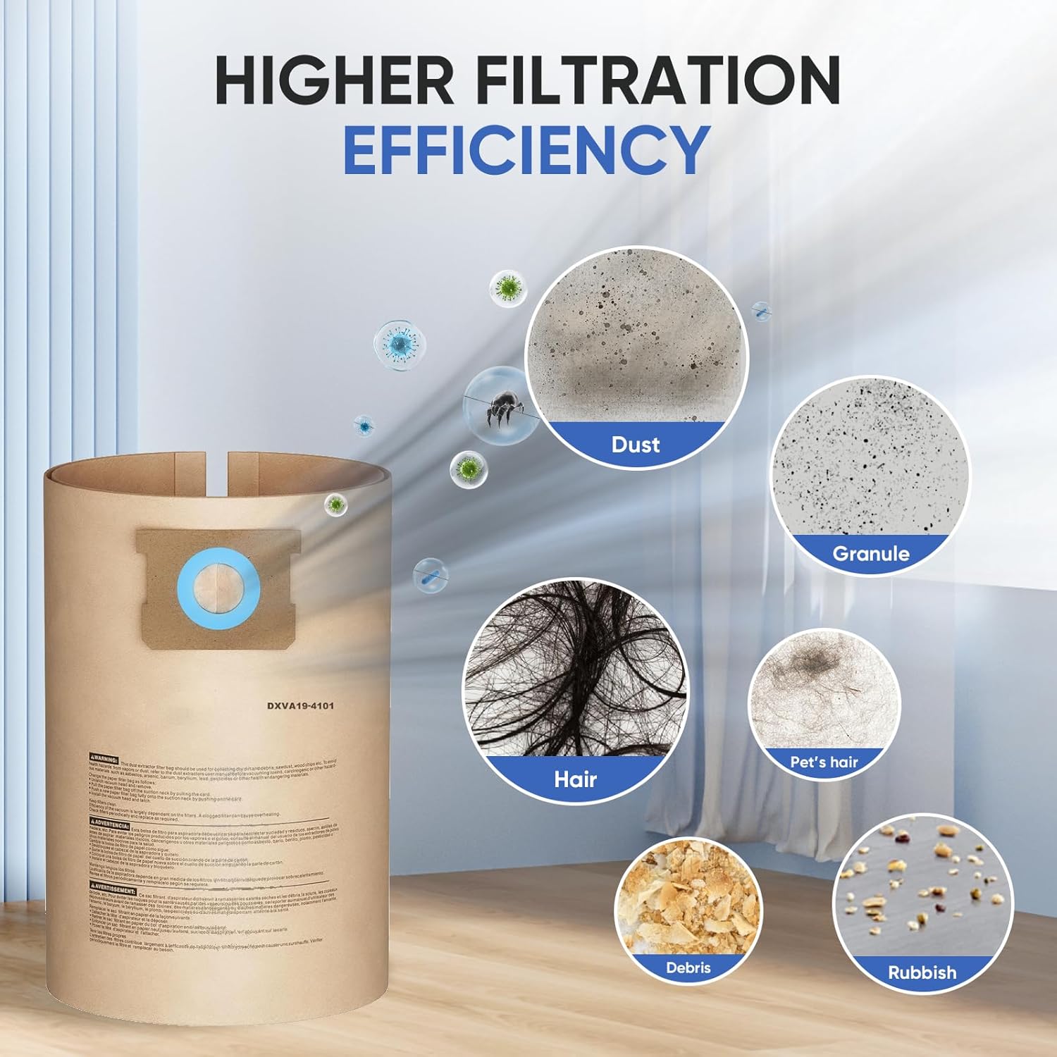 - 【EXCELLENT PERFORMANCE】:Our DXVA19-4101 DXV09P Vacuum Bags Replacement for Dewalt Adopts a Multi-layer Structure with the Perfect Combination of the Outer Paper Layer and Inner Micro Filtration Layer, Ensures Sturdiness While Effectively Capturing 99.9% of Debris, Pet Dander and Other Dust as Small as 0.1 Microns