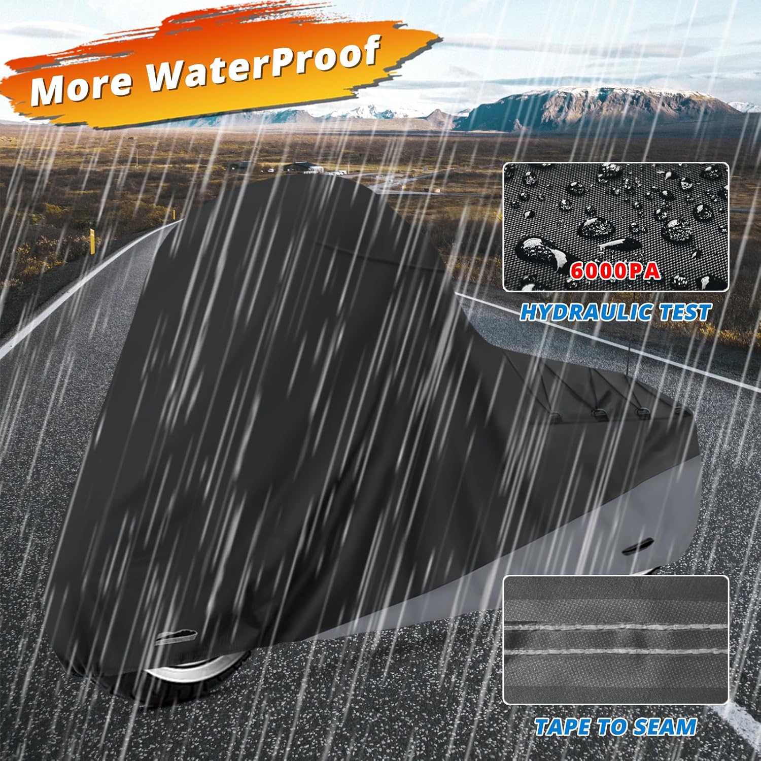 - ăFitmentăSIZE: 107"L * 43"W * 55"H, Compatible with most motorcycle of touring models, suitable for Harley Davidson, Honda, Indian, Ducati, Suzuki, BMW, Triumph Tiger, Yamaha, KTM, Kawasaki. The cover is customized and specially designed for the Touring Models including Road King, Street Glide, Electra Glide, Road Glide and CVO Version, compatible with Goldwings, Chidftain, Challenger, Elite.