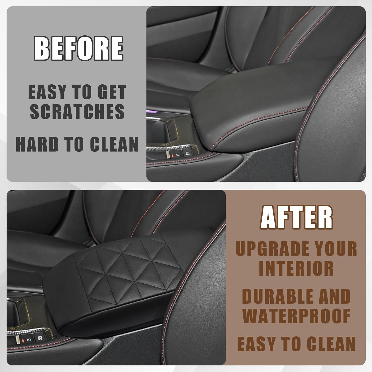 - Unique Design: Designed according to the OEM element to make it match your interior perfectly and stand out from others. Our armrest cover is crafted with high-quality Vegan Leather and an extra layer of foam, which is skin-friendly, breathable and soft.