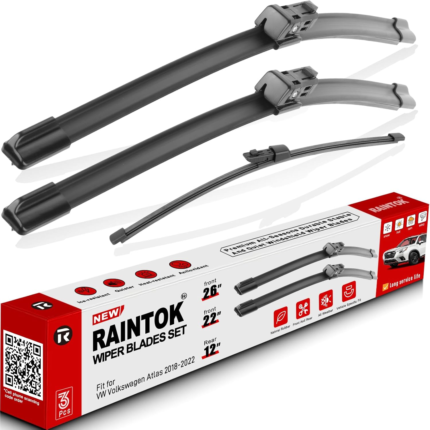 - {FITMENT}: Replacement for 2018 2019 2020 2021 2022 VW Volkswagen Atlas 26inch + 22inch front with 12inch rear windshield wiper blades.