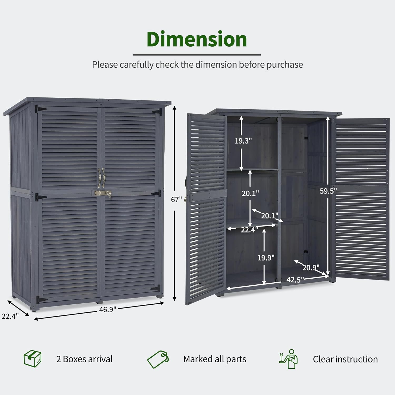 - Wood Cabinet: The patio cabinet storage waterproof allows you to place it in more places, such as outdoor, indoor, garden, yard, porch and even more. (Dimension: 46.9" x 22.4" x 67")