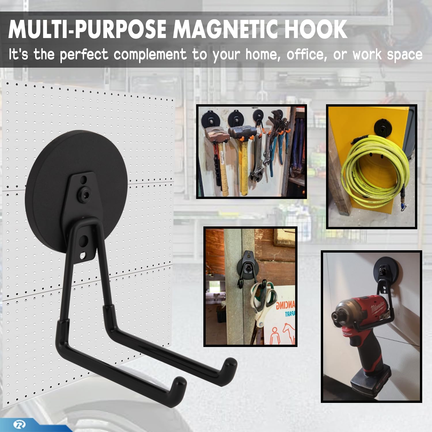 2 Pcs Magnetic Hook Heavy Duty, Strong Magnet Hooks for Garage Tools Hose Rope Electric Drill (Large)