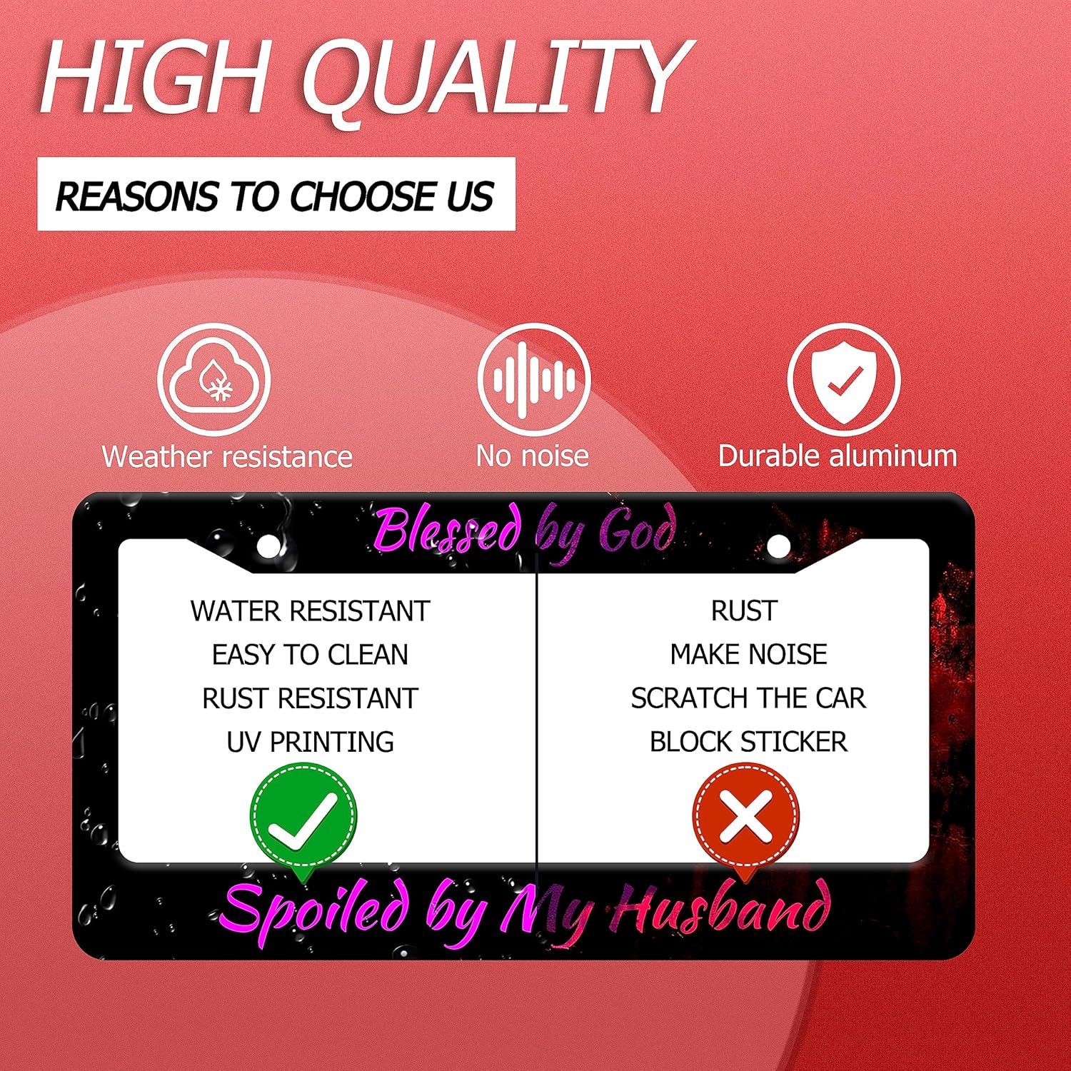 Blessed by God Spoiled by My Husband License Plate Frame Funny Texts License Plate Stainless Steel Parts with Screws Size 12.3" x 6.3" for Men Women