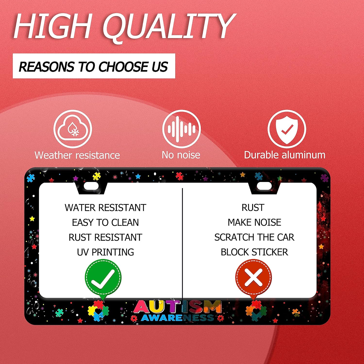 - Design:Use Advanced digital printing Protects license plate frames from Whether it's a car wash, heavy rain or hot weather, it still looks brand new,Let your car still be unique and stylish while driving on the road