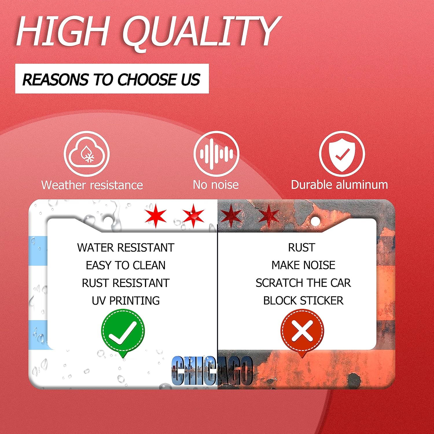 Chicago Flag License Plate Frame City Theme License Plate Stainless Steel Parts Funny License Plate Decorative with Screws Size 12.3" x 6.3" Men Women